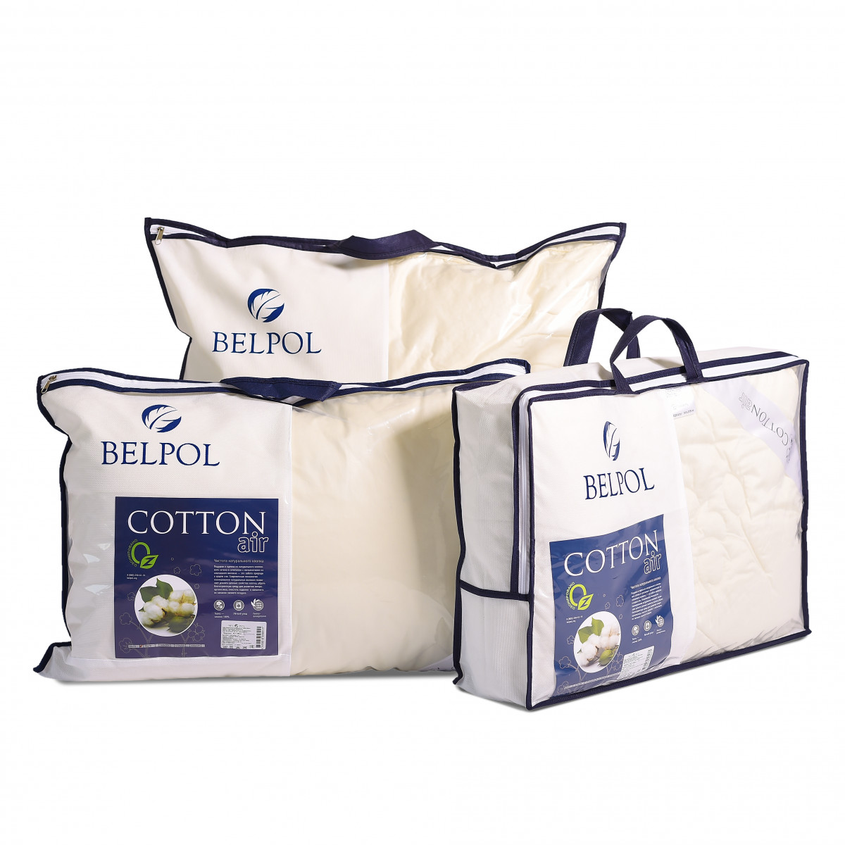 Одеяло Bel-Pol «Cotton Air» зимнее одеяло с инновационным наполнителем - термополотном с хлопковыми волокнами, соединенными полиэфиром - легкое, средне-пышное и особенно теплое. Специальное хлопковое термополотно прекрасно сохраняет тепло, а отделка сатиновой тканью делает одеяло не только теплым, но приятным на ощупь. Такой наполнитель не сбивается в комки и превосходно держит форму. Одеяло с качественным хлопковым наполнителем отличаются легкостью, мягкостью, высокой гигроскопичностью. Хлопковые одеяла идеальны для аллергиков и чувствительных людей, именно хлопок чаще всего выбирают в качестве наполнителя для детского одеяла. За одеялом с хлопковым наполнителем легко ухаживать – его можно стирать в стиральной машине и легко сушить. Пышный наполнитель не даст вам замерзнуть, так как содержит большое количество воздуха между волокнами. Воздушные прослойки прекрасно сохраняют тепло вашего тела, позволяя ему при этом дышать. Хлопковыми одеялами можно укрываться как летом, так и зимой. Одеяло имеет эксклюзивную
