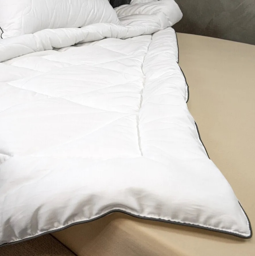 Всесезонное одеяло TENCEL с наполнителем из тенселя в комбинированном чехле из сатина с одной стороны и перкаля с другой. В качестве наполнителя используется эвкалиптовое волокно, которое повышает комфортность одеяла в использовании, усиливает гигроскопичность и износостойкость. Под таким одеялом комфортно спать, так как наполнитель и хлопковый чехол хорошо пропускают воздух, а также естественным образом поглощают излишки влаги и быстро ее испаряют. Одеяло не вызывает аллергию и раздражение даже на самой чувствительной коже. Постельные принадлежности из тенселя — это экологичность, сохранение формы и долговечность.