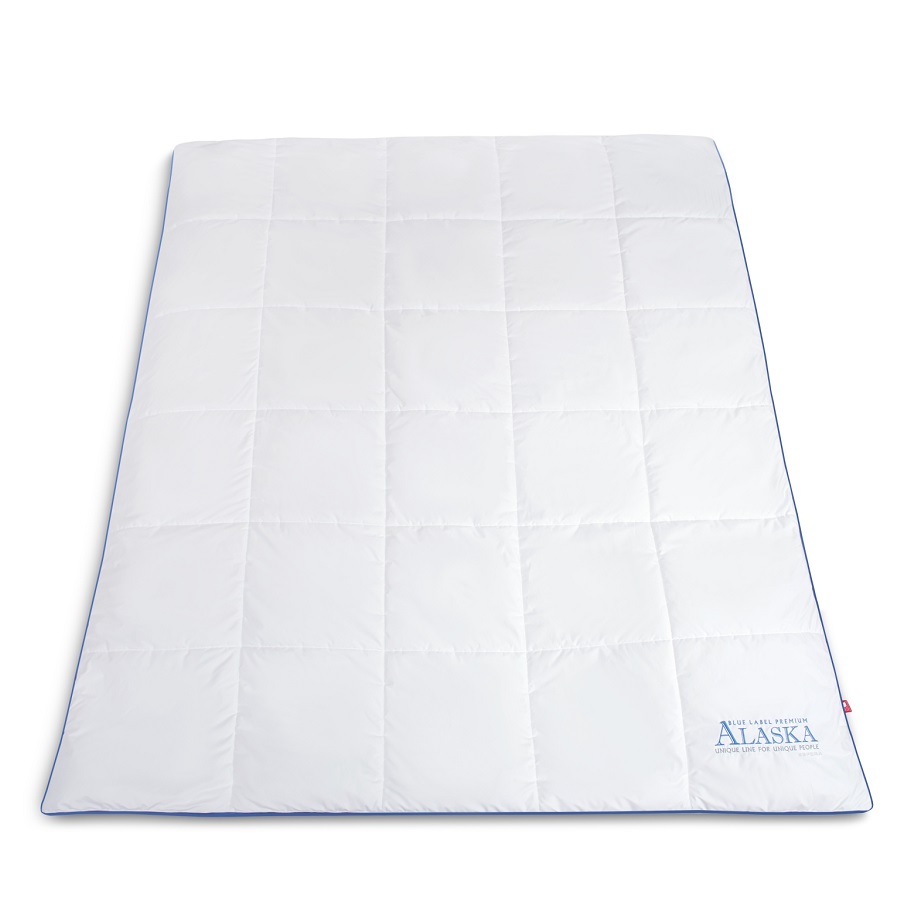 Уникальный пошив с применением внутренних перегородок делает одеяло Alaska Blue Label легким, воздушным, но при этом невероятно теплым, перегородки в кассетах одеяла позволяют наполнителю свободно набирать большой объем воздуха. Двойная отстрочка по периметру одеяла с использованием фирменного канта обеспечивает сохранение формы изделия и гарантирует более прочный шов, исключающий миграцию наполнителя. Ткань чехла отличается особенной равномерной структурой, что делает её тонкой и гладкой, но при всей своей легкости и воздушности, остается достаточно плотной. Основные достоинства одеяла: производится из натурального экологичного сырья, не вызывает аллергии, легко пропускает через себя воздух и влагу, неприхотливо в уходе, легко стирается и быстро высыхает, допускается бережная машинная стирка на деликатном режиме (не более 40 градусов), дальнейшая сушка в расправленном виде при комнатной температуре.