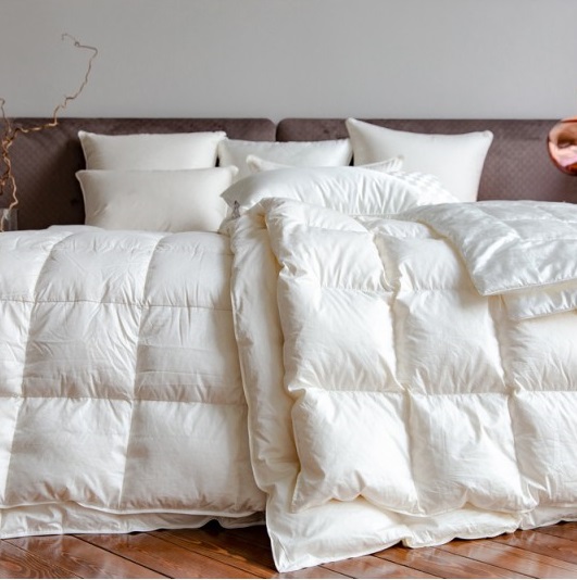 Чехол поделен тканевыми перегородками, поэтому пух равномерно распределяется по периметру, одеяло лучше сохраняет тепло и комфортно повторяет контуры тела. Пух вдувают в каждую кассету, а затем вручную зашивают на швейной машинке. Экологически чистый, длинноволокнистый, египетский хлопок не вызывает раздражение кожи, поддерживая ее естественный баланс. Чехол из тончайшего сатина очень мягкий на ощупь, но не пропустит ни одной пушинки наружу за счет плотного переплетения волокон. Для наполнителя используют очищенный и отборный пух европейского гуся с высоким коэффициентом упругости.