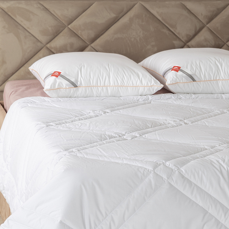 Мягкая и легкая белоснежная хлопковая ткань изделий «Диамант» отлично дополняет наполнитель. Ткань обладает высокой термо- и влаго- регуляцией, очень приятна тактильно и абсолютно гипоаллергенна. Хлопок с тиковым плетением достаточно износостойкий, очень легок в уходе, практичен, невероятно приятный на ощупь.