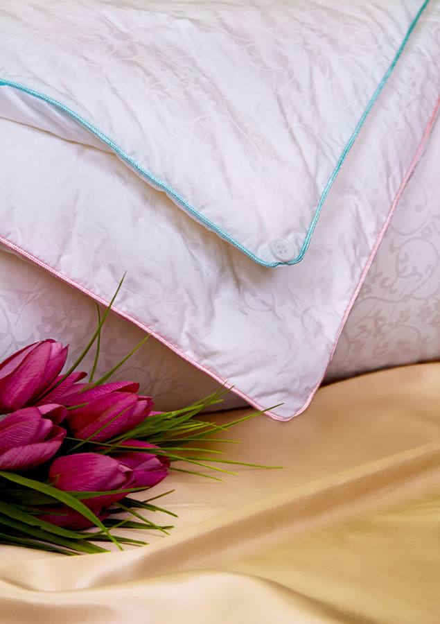 Одеяло с наполнителем из натурального шелка «Adam & Eva» изготовлено так, что одна его половина теплее другой, что позволяет обеспечить комфортный сон людям с разными предпочтениями. В качестве наполнителя использован длинноволокнистый натуральный шёлк Mulbery, усовершенствованный по технологии Silk NanoPS. Благодаря которой материал становится более устойчивым к окружающей среде и моющим средствам, при этом сохраняя все уникальные свойства материала. Волокно обладает гипоаллергенными свойствами, поэтому абсолютно безопасно для людей с проблемной и чувствительной кожей, склонной к образованию аллергических реакций и раздражений. Чехол изготовлен из жаккардового сатина, плотностью 300 ТС. Точечная стёжка, вместо сплошной — это не только отличительная особенность качества одеяла, но и очевидный плюс в использовании: технология улучшает теплообменные свойства одеяла и сохраняет его пышным.