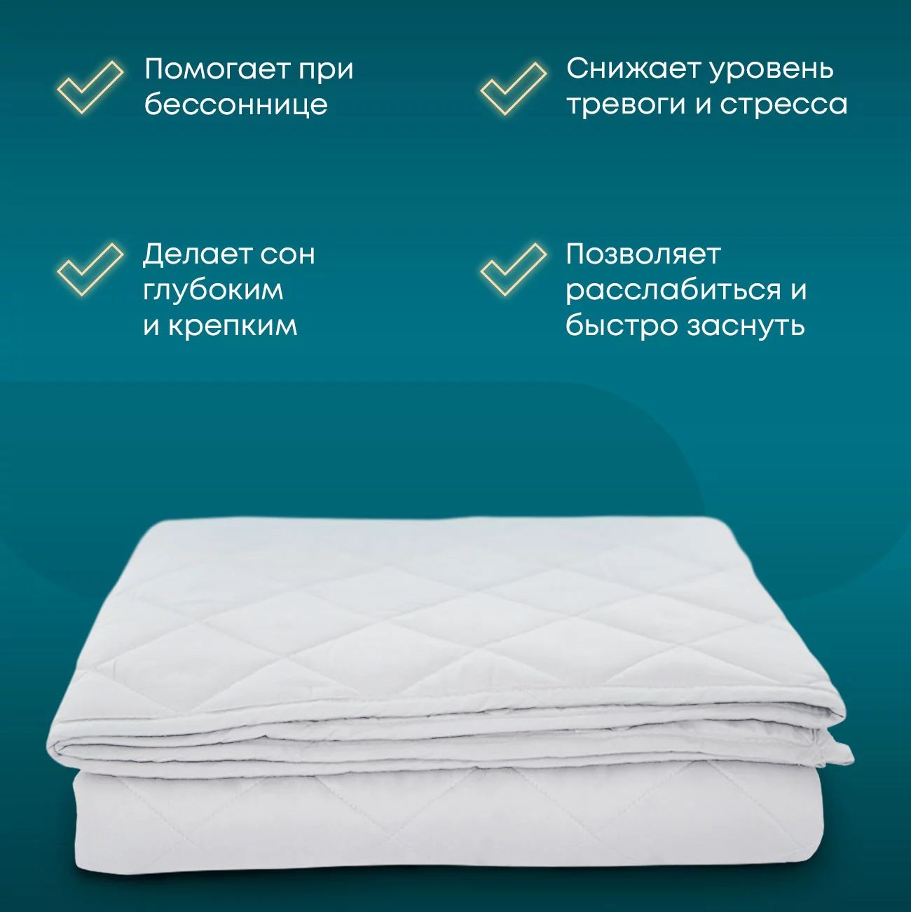Коллекция утяжеленных одеял от торговой марки Wistrova это инновационная разработка с учетом техники «глубокого прикосновения». Уникальная пятислойная технология изготовления с дополнительным утяжелением в виде стеклянных микрогранул дарит эффект легкой сенсорной терапии и способствует быстрому засыпанию. Ткань чехла из 100% хлопка гипоаллергенна, обладает отличной воздухопроницаемостью и терморегуляцией. Ромбовидная стежка, за счет оптимального размера ячейки, позволяет равномерно распределить и надежно закрепить наполнитель внутри изделия. Благодаря такому уникальному строению одеяла создается «эффект объятий» во время сна, который способствует уменьшению симптомов стресса, тревоги и бессонницы. Равномерное давление на все тело благотворно влияет на тонус кожи и помогает расслабить мышцы. Сон под таким одеялом становится более спокойным и глубоким. Для того чтобы выбрать оптимальный вес одеяла необходимо рассчитать цифру равную 10-15% от массы тела.