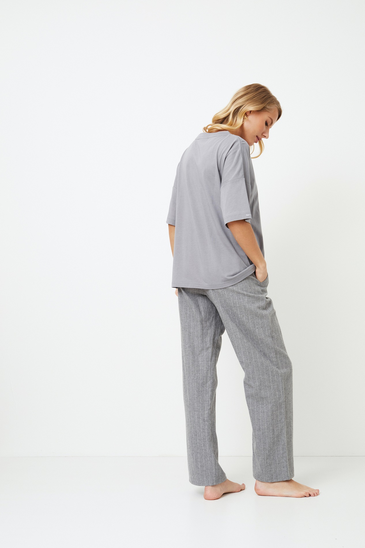 Aruelle – европейский бренд домашней одежды для людей, которые предпочитают комфорт, наслаждаясь теплотой и домашним уютом. При производстве своей продукции компания всегда руководствуется последними тенденциями моды и использует только лучшие ткани. Бренд Aruelle для тех, кто ценит качество и стиль. Комплект Cory всегда будет незаменим для отдыха/ Выполненный из мягкого хлопка спокойного серого оттенка в тонкую полоску, имеет классический вид, который никогда не выйдет из моды. Футболка с короткими рукавами и круглым вырезом горловины украшен очаровательной вышивкой по краю рукава. В сочетании с широкими брюками с удобными карманами этот комплект отличается сдержанной простотой. Для создания парного образа обратите внимание на мужскую линейку Carl. Состав: верх: 50% хлопок, 50% модал, низ: 100% хлопок фланель.