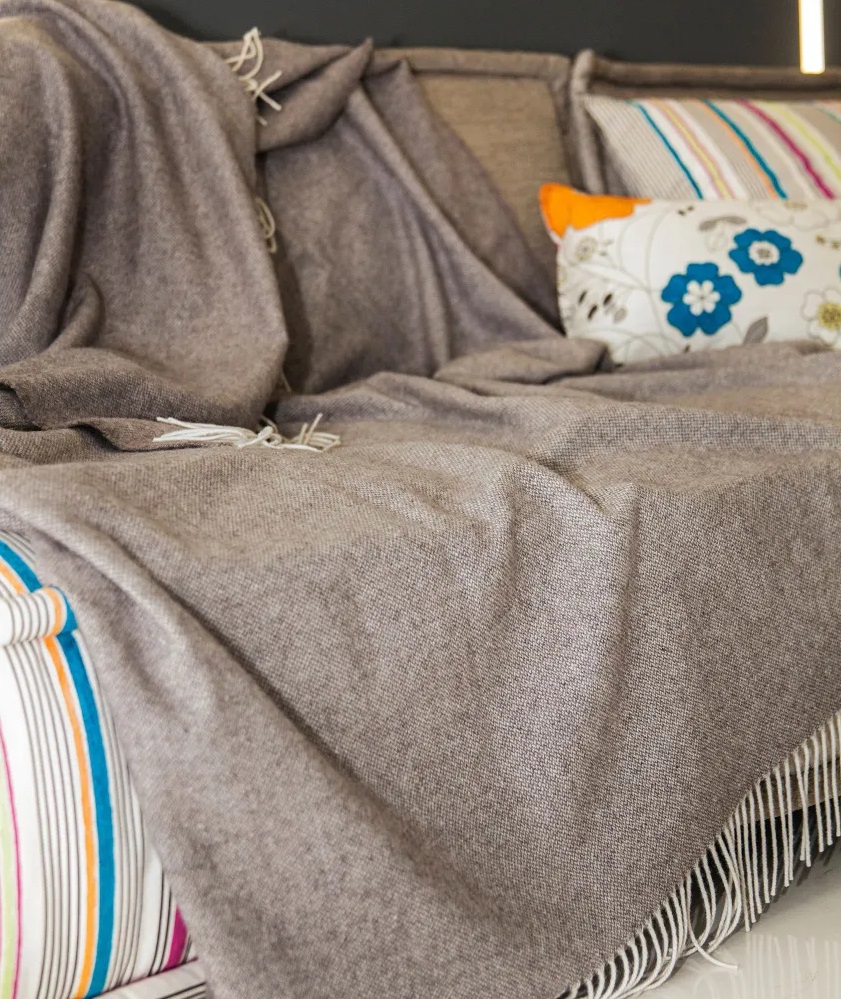 Плед Familia из шерсти мериноса с добавлением мягкого, воздушного кашемира. Эти два вида шерсти одни из самых лучших по своим качествам: мягкие и легкие, дарят тепло и комфорт. Мериносовое руно прекрасно согревает в любую погоду, хорошо впитывает влагу, обеспечивая эффект сухого тепла. Помимо этого, овечья шерсть способна снимать статическое электричество, мышечное и нервное напряжение, помогая тем самым расслабиться. Пух кашмирских коз позволяет создавать воздушные модели, которые по своей мягкости превосходят шелк. Этот ценный пух собирают вручную, вычесывая коз весной, одна козочка может дать всего 100-150 граммов нежной и теплой шерсти.