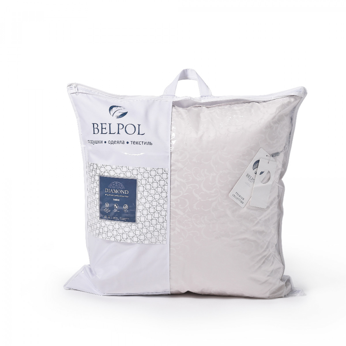 Пуховая подушка DIAMOND - идеальное сочетание ткани, наполнителя и дизайна. Технологичный современный модал и классический хлопок в составе ткани. Пуховый наполнитель высокого качества остается непревзойденным утеплителем. Трехкамерная подушка, улучшенной конструкции. Внешние камеры наполнены мягким пухом, а внутренняя камера наполнена плотным пухо-перовым составом, благодаря чему подушка приобретает упругие свойства. Материал чехла — сатин-жаккард серебристого цвета. Отборный белый пух северных пород гусей в одеяле и подушке подарит ни с чем не сравнимое удовольствие от его пышности и мягкости. Этот природный компонент отличается легкостью и высокой теплоизоляцией. Именно пуховые подушки позволяют создать комфортный микроклимат во время сна, так как пух прекрасно пропускает воздух и обладает хорошей гигроскопичностью. Наполнитель: 100% белый гусиный пух, внутренняя камера 50% пух 50% перо.