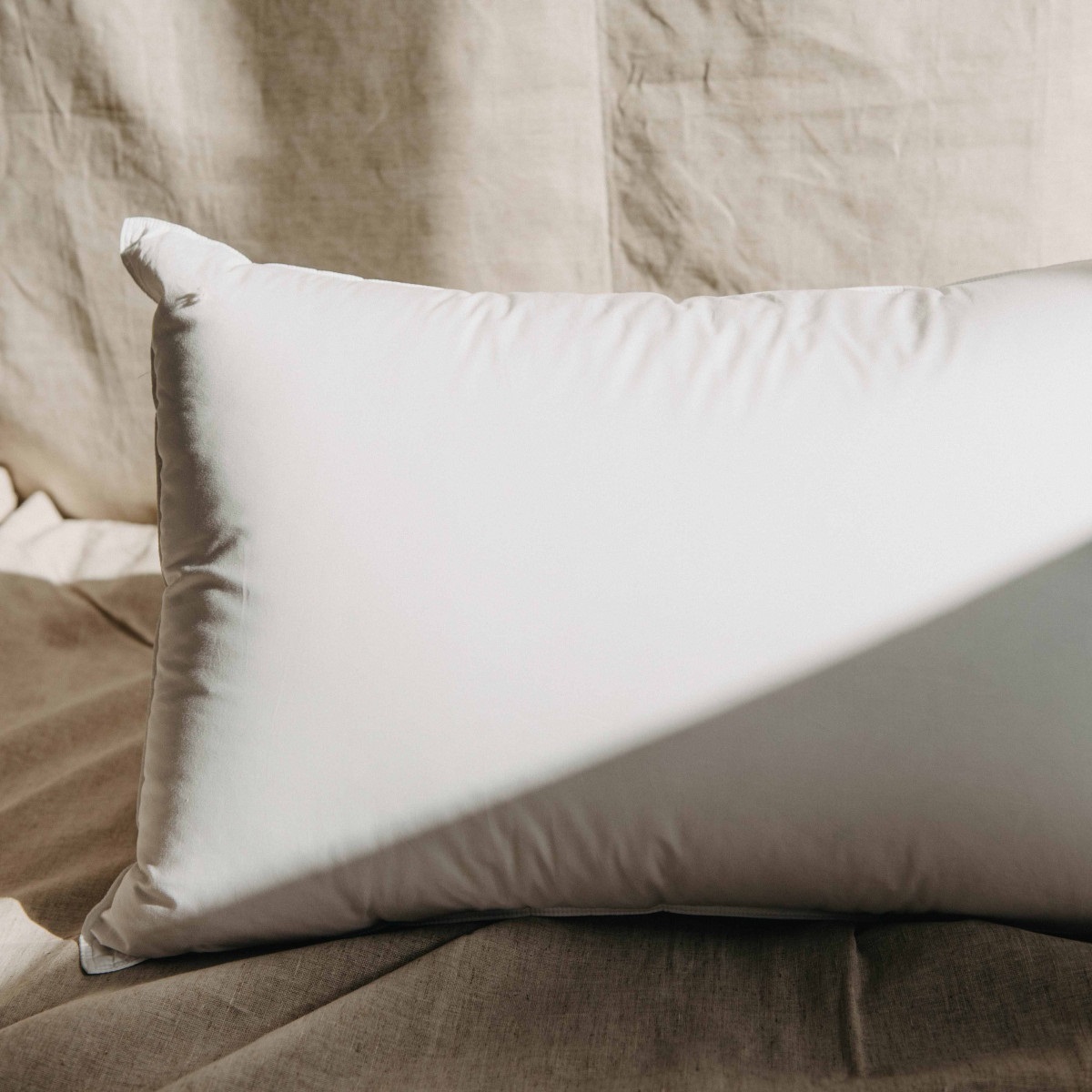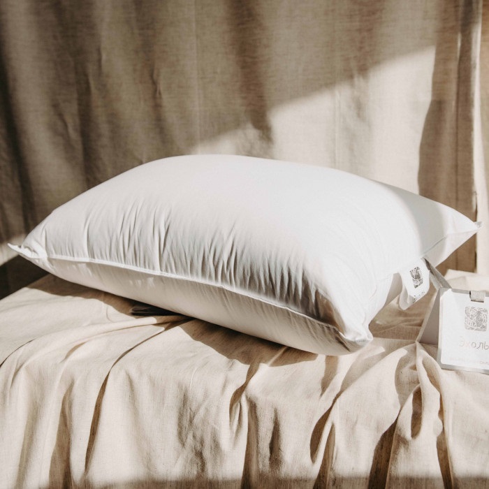 Белая подушка из уникальной эко-коллекции. Батистовый чехол из 100% хлопка отличается легкостью, прочностью и долговечностью.