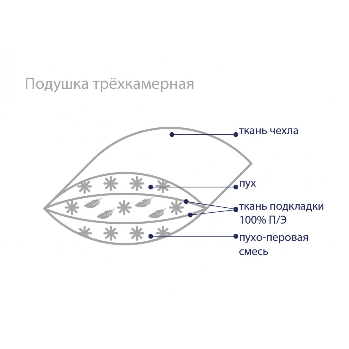 Трехкамерная подушка TERRA, комфортная, легкая и долговечная модель. Подушка обеспечит хорошую опору, удобное положение головы и поспособствует здоровому сну и отдыху. Благодаря пухо-перьевому наполнителю обеспечит оптимальный температурный и эффективную циркуляцию воздуха внутри изделия. Отличие трехкамерной подушки от других моделей в том, что она состоит из 3 отделений, с разными наполнителями, она более высокая и упругая, для любителей спать на боку. Наполнитель ядра подушки-100% пуховое мелкое перо. Такая конструкция создает в подушке внутреннее «ядро», которое обеспечивает необходимую упругость, а внешние камеры с пухом, необходимою мягкость. Такие подушки упругие, но не жёсткие. Ткань чехла-мягкий сатин бежевого цвета, структура которого максимально удерживает наполнитель внутри чехла. Для прочности швов и исключения миграции пуха, подушка имеет кант с двойной строчкой. Наполнитель: 100% серый гусиный пух, внутренняя камера 100% пуховое перо.