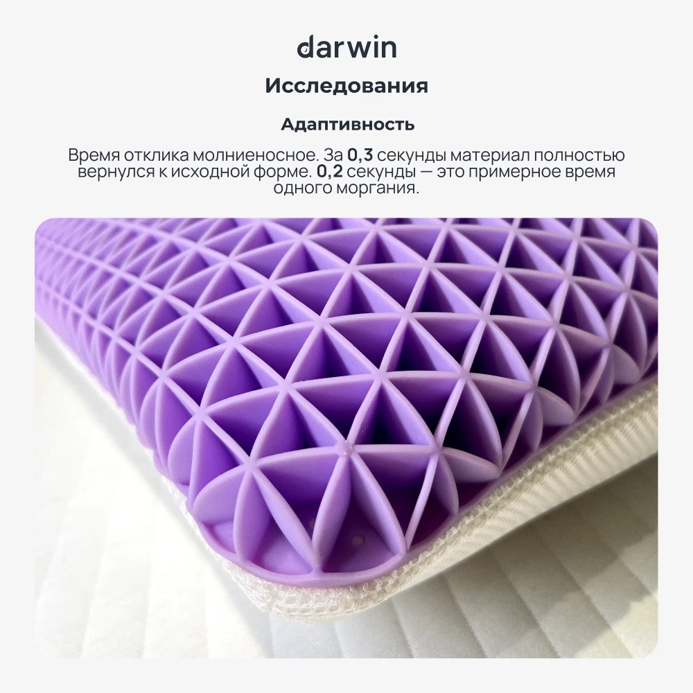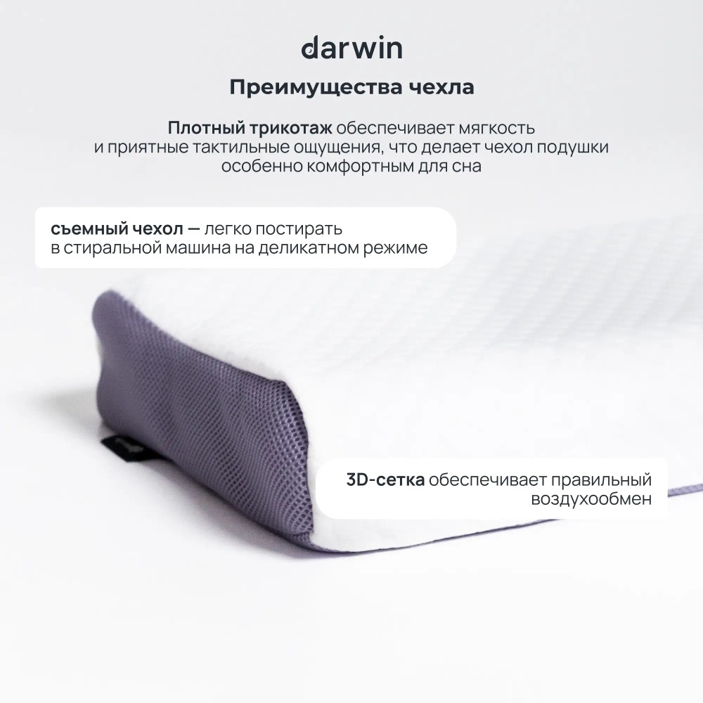 Подушка Composite от российского бренда Darwin разработана совместно со специалистами в области ортопедии и сна. Изделия выполнены из гипоаллергенного материала, соответствующего европейским стандартам качества. Классическая форма анатомической подушки позволяет выбрать любую комфортную позу для сна. Вязкоэластичная пена с ярко выраженным эффектом памяти, идеально подстраивается, обеспечивает поддержку и снимает мышечное напряжение. Двусторонний чехол выполнен из инновационного материала Cell Technology, с одной стороны, и мягкого трикотажа высокой плотности с другой. Инновационная сетчатая структура материала Cell Technology рассеивает избыточное тепло и позволяет поддерживать комфортную температуру во время сна.