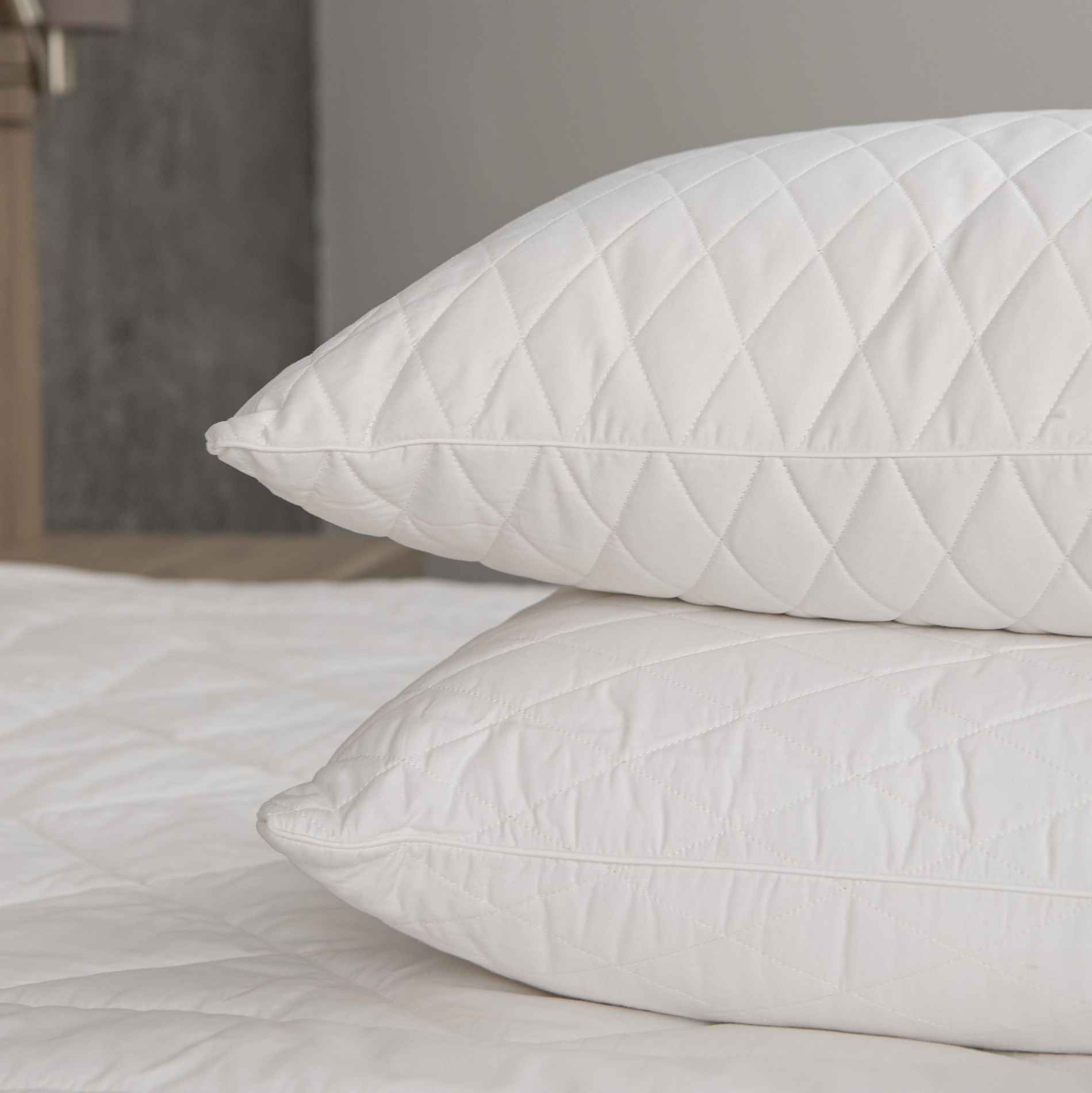 В коллекции COTTON представлена подушка с кантом средней упругости. Съемный чехол на молнии простеган на хлопковом волокне и отшит из высококачественного белого сатина. Основной наполнитель из полиэфирного волокна придает подушке мягкость. Поскольку хлопковые волокна состоят почти из чистой целлюлозы, материал обладает высокой гидрофильностью и идеально впитывает влагу. Хлопок отлично вентилирует воздух, позволяя коже «дышать» и обеспечивает комфортные тактильные ощущения во время сна.