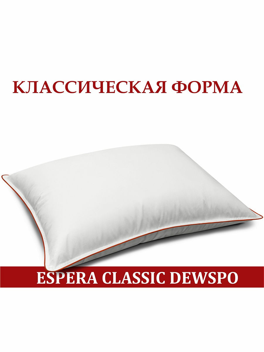 Классическая подушка Espera Classic Dewspo отлично подойдет для любителей спать на средних по упругости подушках. Подушка Classic Dewspo гарантирует правильное положение головы и шейного отдела во время сна, благодаря чему обеспечивается полное расслабление мышц шеи. Чехол подушки выполнен из натуральной хлопковой ткани тик, эта ткань поддерживает наполнитель в идеальной форме. Из-за своей плотности и минимального веса ткань не придавливает наполнитель, позволяя подушке сохранять свой естественный объем. Используемый в изделии наполнитель из древесной целлюлозы «FossFill 3000 Lux» позволяет принять максимально комфортное положение. Благодаря наполнителю FossFill 3000 Lux, изделие отличается легким весом и хорошей плотностью. Его упругая структура обеспечивает пышный объем, воздушную и мягкую форму. Специальная силиконовая пропитка наполнителя, сохраняет первоначальные свойства даже после многократных стирок, не слеживается, не образует комков, сохраняя объем и структуру в течение многих лет.
