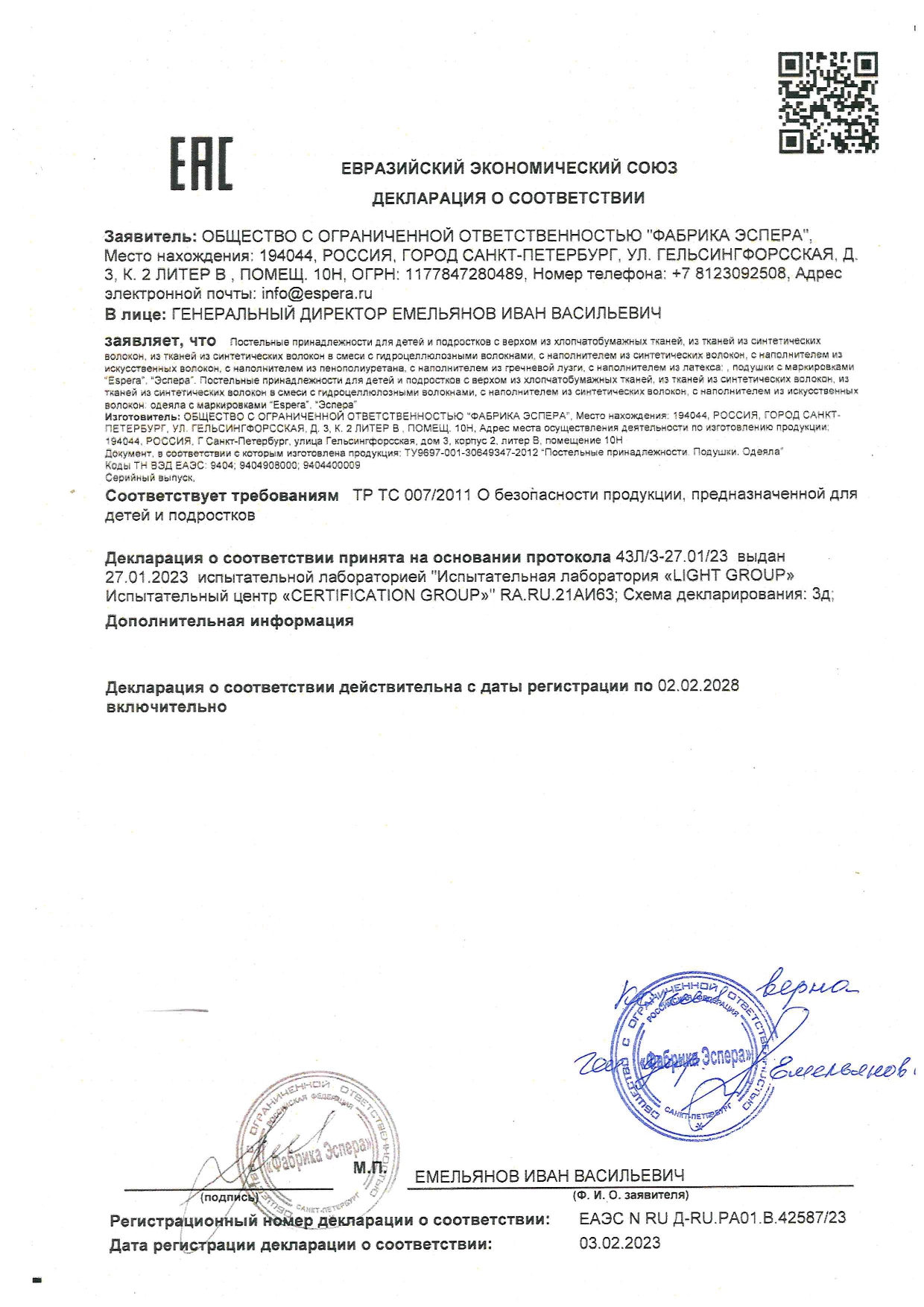 Подушка «Baby» идеальная подушка для Вашего малыша. Мягкая и не высокая она анатомически правильно поддержит шею и спину малыша во время сна. Растущий организм ребенка очень подвержен различным негативным влияниям. Искривление позвоночника, остеохондроз и другие проблемы, возникшие из-за неправильно подобранной подушки, возникают в юном возрасте. Анатомическая подушка равномерно распределяет нагрузку на позвоночник во время сна, что очень важно для растущего организма. Наполнитель FossFill 3000 Lux, уникальный запатентованный наполнитель производится в Дании по сложнейшей технологии из натуральной древесной целлюлозы. Экологически чистое гипоаллергенное волокно. Наполнитель способствует нормальной циркуляции воздуха и является отличным терморегулятором, что выгодно отличает его по качеству от других наполнителей. Подушка проста в уходе, помещается в обычную стиральную машину, быстро сохнет и не комкается. Подушка прослужит вам долго и будет оставаться мягкой и упругой. Рекомендованный возраст-от 4-х лет.