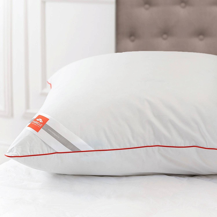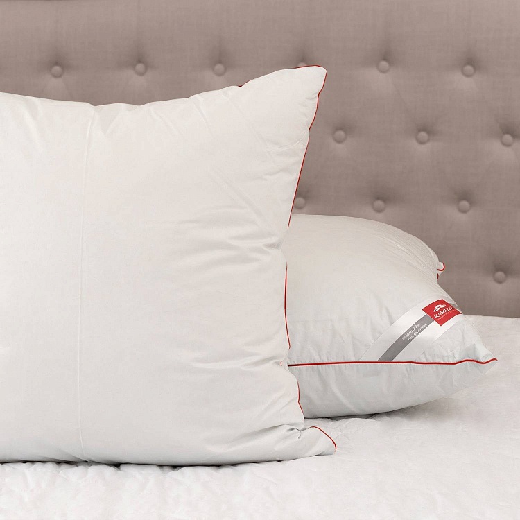 Белоснежный 100% хлопковый чехол с кантом винного цвета, придает изделиям эстетическую привлекательность и подходит к постельному белью любой расцветки. Наполнитель: 70% пух гусиный серый, 30% перо.