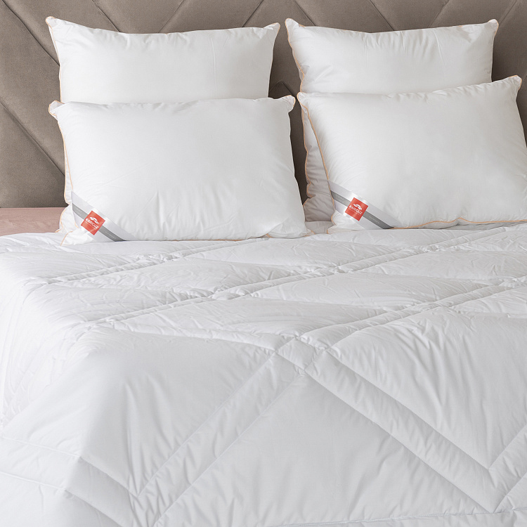 Мягкая и легкая белоснежная хлопковая ткань изделий «Диамант» отлично дополняет наполнитель. Ткань обладает высокой термо и влаго регуляцией, очень приятна тактильно и абсолютно гипоаллергенна. Хлопок с тиковым плетением достаточно износостойкий, очень легок в уходе, практичен, невероятно приятный на ощупь.
