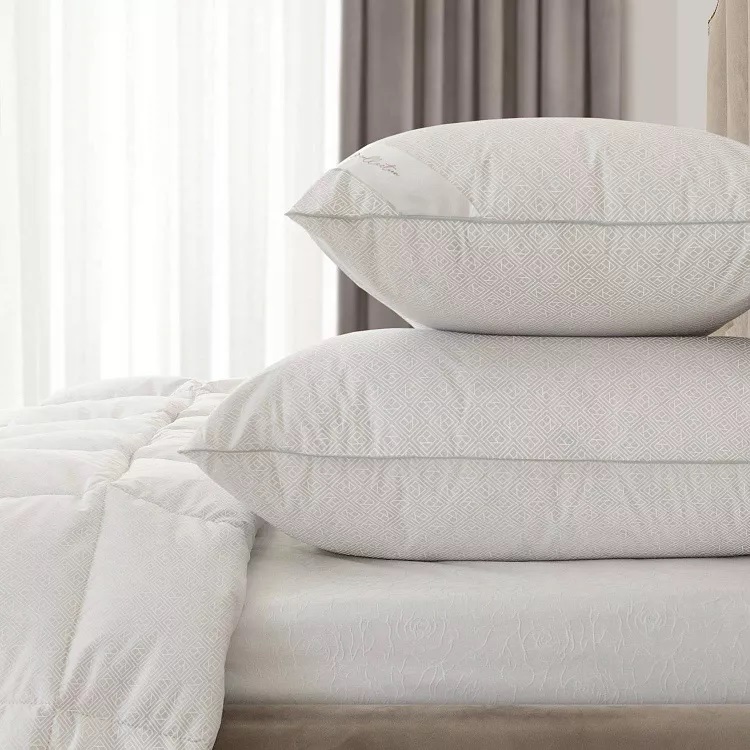 Чехол из хлопкового тика мягкий и приятный на ощупь. Ткань износостойкая, практичная, надежно держит объемный наполнитель. Подушку также можно использовать для комфортной поддержки спины при чтении книг в кровати. Наполнитель: 70% пух гусиный белый, 30% перо.