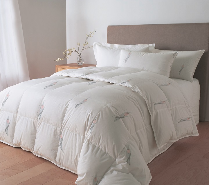 Крупный, объемный пух обрамлен нежным и мягким хлопком-батистом белого цвета, с оригинальным принтом, привезенным из Германии. Данный вид хлопка отличается особым плетением нитей, которое позволяет впитывать больше влаги по сравнению с обычным хлопком. Изделия не занимают много места при хранении, их можно смело сминать, ведь наполнитель отвечает за сохранение объема. Наполнитель: 100% белый сибирский гусиный пух.
