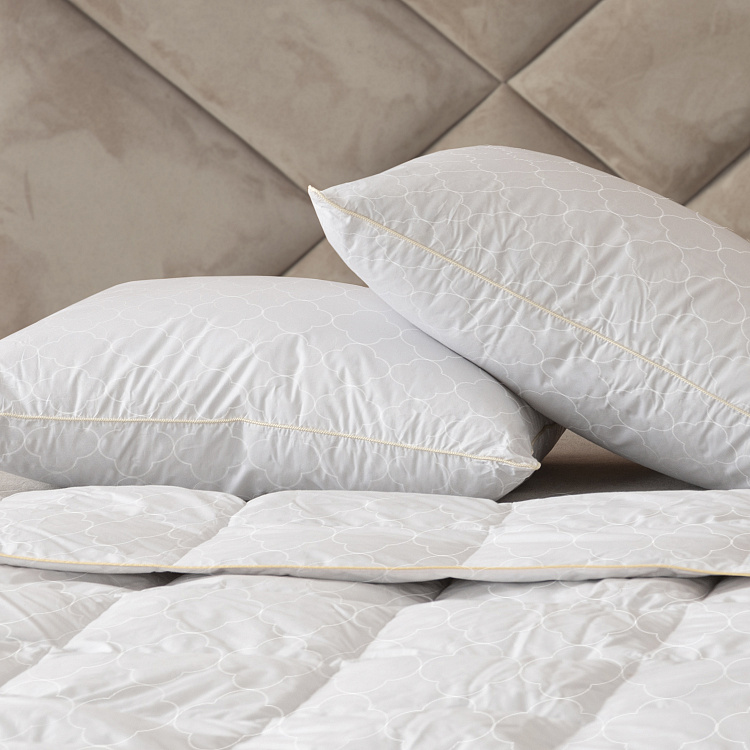 Плотная хлопковая ткань чехла с тиковым плетением и особый метод обработки ткани Downproof делают подушку прочной и износостойкой, а также не позволяют наполнителю выбиваться из чехла. Изделие сохраняет объем и форму на протяжении всего времени использования.