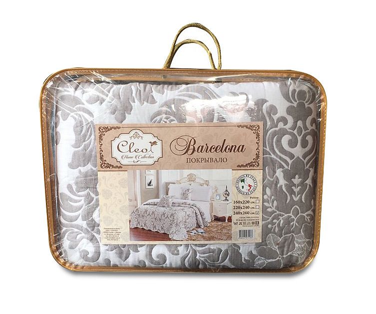 Покрывало Cleo коллекции "Барселона", выполненное в легких, пастельных тонах - изготовлено из хлопка, двустороннее, без наполнителя. Узор с обоих сторон образован переплетением нитей, покрывало мягкое и при этом очень прочное. Изделия из этого материала имеют оригинальный внешний вид, они выглядят роскошно, благородно. Хлопок не вызывает аллергии и обладает антистатическими свойствами, покрывало из хлопка легко гладить и стирать.