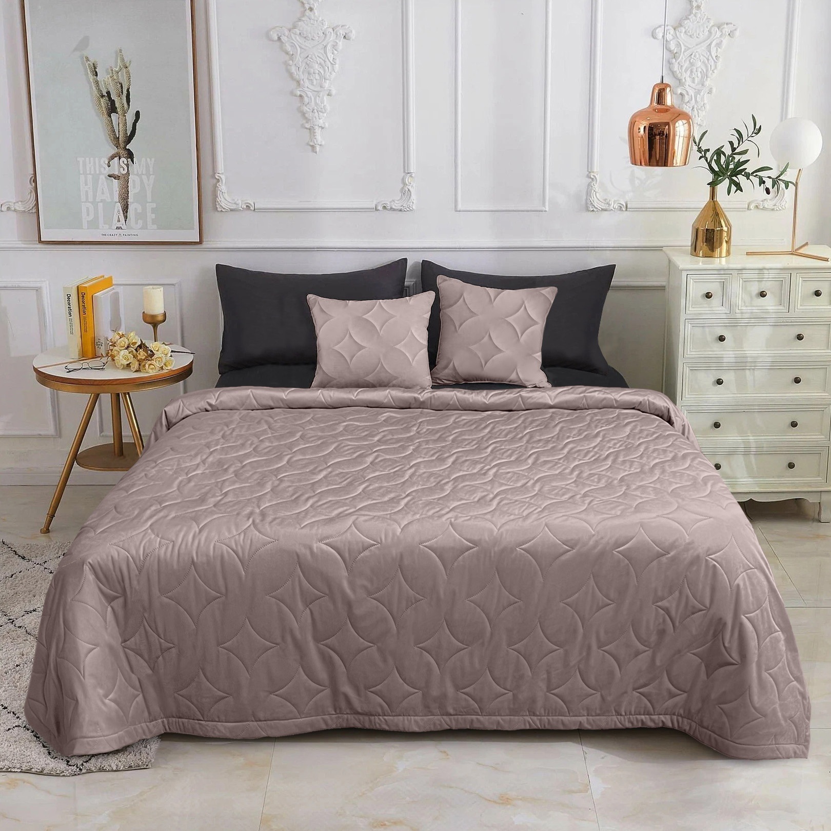 Покрывало Soprano создано для роскошного украшения спального места. Изделие выполнено из бархатистого велюра, который очарователен внешне и приятен на ощупь. Безниточная стежка Ультрастептм в виде четырехлистника добавляет утонченную ноту покрывалу, которая будет звучать завораживающей песней и очаровывать своей эстетикой. Уникальная технология скрепления Ультрастептм не только надежно фиксирует наполнитель, но и исключает роспуск стежки, что значительно продлевает срок его службы. Покрывало Soprano имеет европейскую обработку края - подгибка с евроуглом, что придает ему аккуратный внешний вид. Изделие требует бережного ухода, поэтому рекомендуем отдавать его в специализированную химчистку. Если у Вас нет такой возможности, то в домашних условия покрывало необходимо стирать вручную, без применения отбеливающих средств.