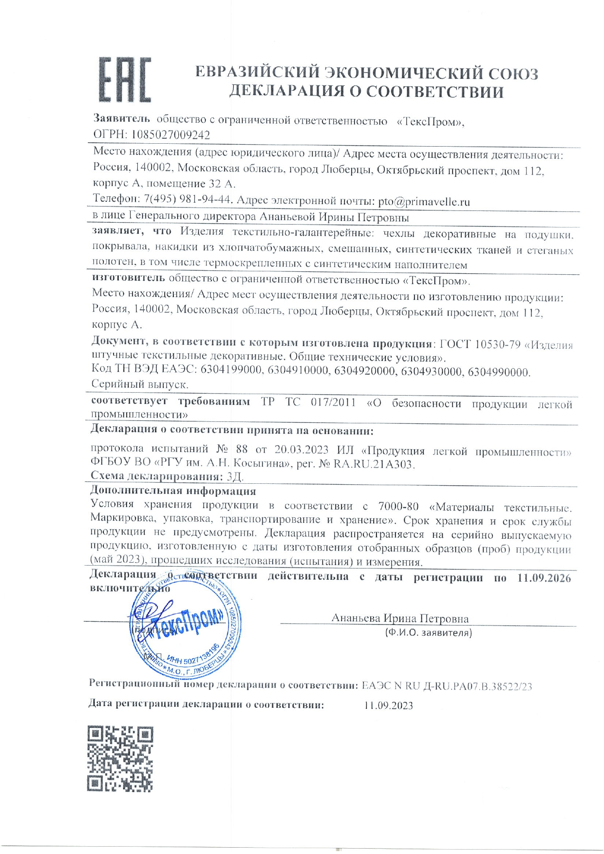 Уход за товаром