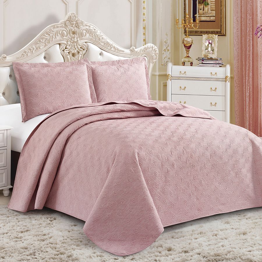 Покрывало коллекции «Muscat» отличается удивительно мягкой поверхностью и при этом сохраняет износостойкость и прочность. Эта коллекция покрывал состоит из приглушенных, пастельных расцветок, поверхность материала бархатистая, не блестит, по краям выполнена отделка тонким кантом (косая бейка). Повторяющийся узор образован стежкой, наполнитель – синтепон. Покрывало изготовлено из полиэстера. В комплект входят две наволочки с французским кантом. Изделие может стать украшением интерьера вашего дома, а также роскошным подарком для Ваших близких.