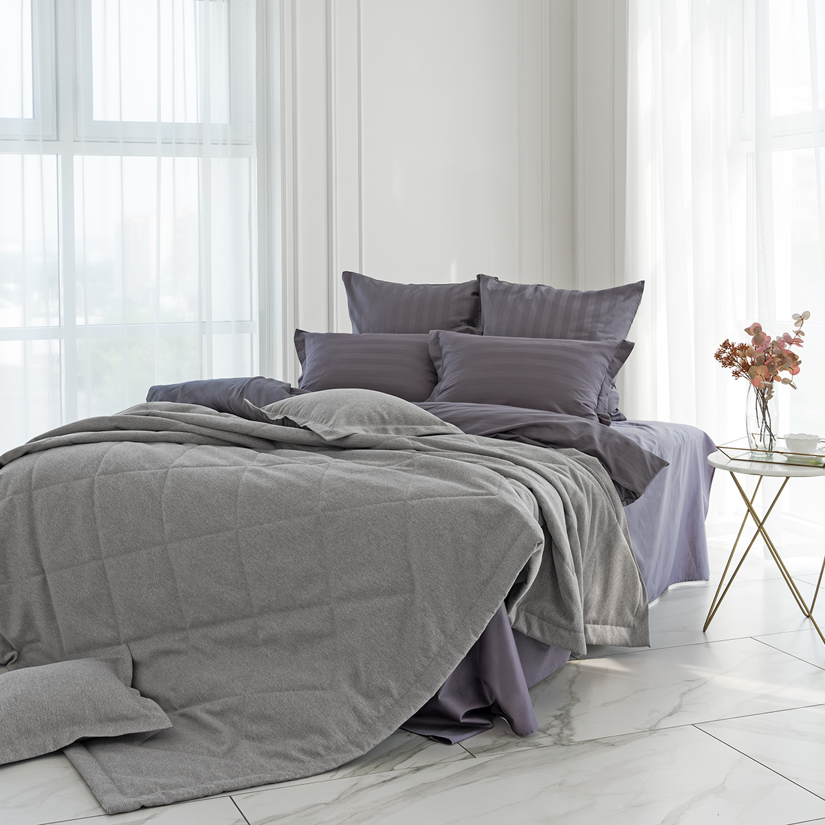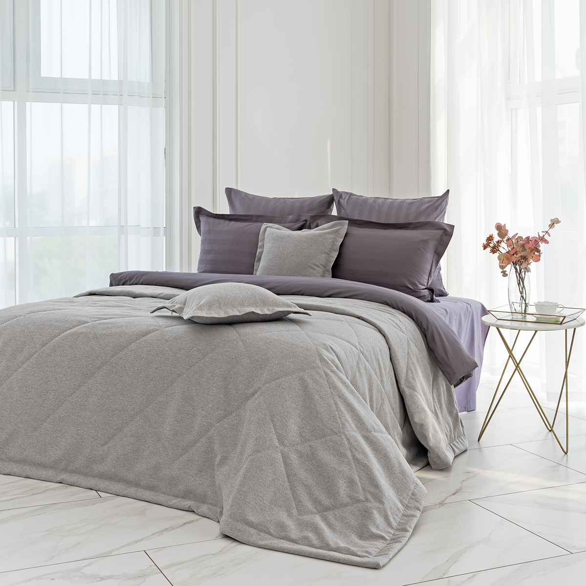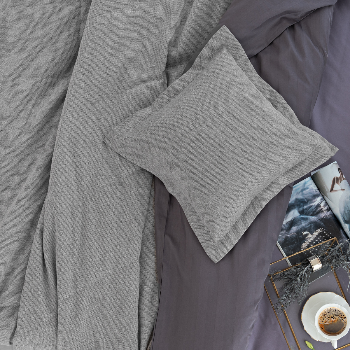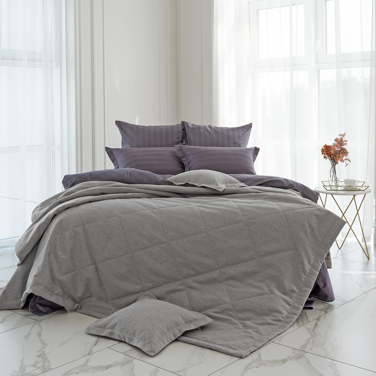 Покрывало с наволочками Rigina 3258 графитовый 240*260 см