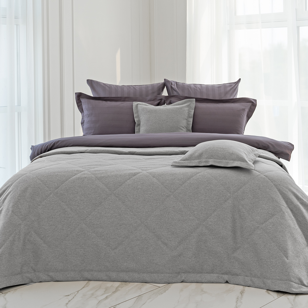 Коллекция Rigina для тех кто стремится создать стильный и уютный интерьер спальни. Жаккардовый узор делает покрывало изысканным и элегантным. Ромбовая стежка подчеркивает классический дизайн. Подкладка из микрофибры велюра не только добавляет комфорта и мягкости, но и предотвращает скольжение покрывала на кровати. Наволочки в комплекте подчеркивают стиль и завершают образ.