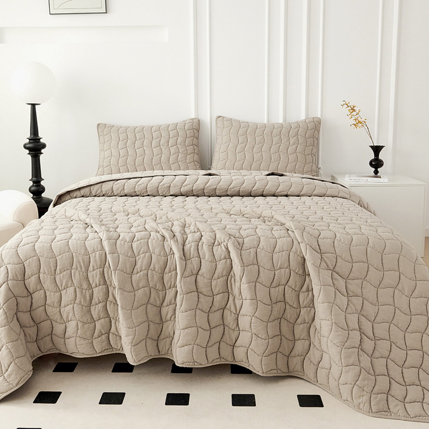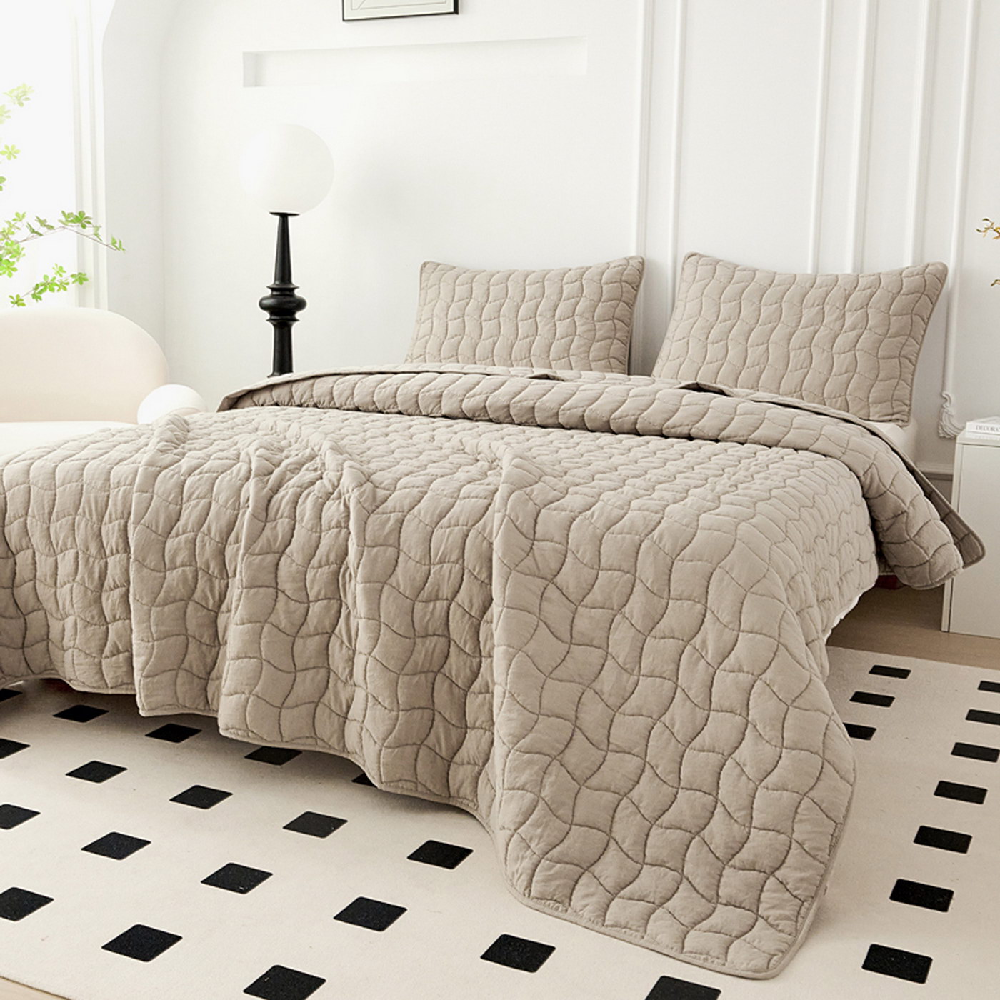 Коллекция стеганых покрывал Минелла это стильное дополнение интерьера. Изготовленное из мягкой и нежной ткани, покрывало лёгкое и приятное на ощупь. Благодаря натуральному составу, материал воздухопроницаем и гигроскопичен. Эффект жатки создаёт интересную фактуру и объём, а декоративная стёжка добавляет шарма и делает изделие более прочным и долговечным. Наволочка в комплекте обеспечивает удобство использования и гармонично сочетается с основным изделием. Коллекция Минелла подходит для разных стилей интерьера, добавляя уют и атмосферу тепла. Покрывало легко стирается и быстро сохнет, что облегчает уход за ним.