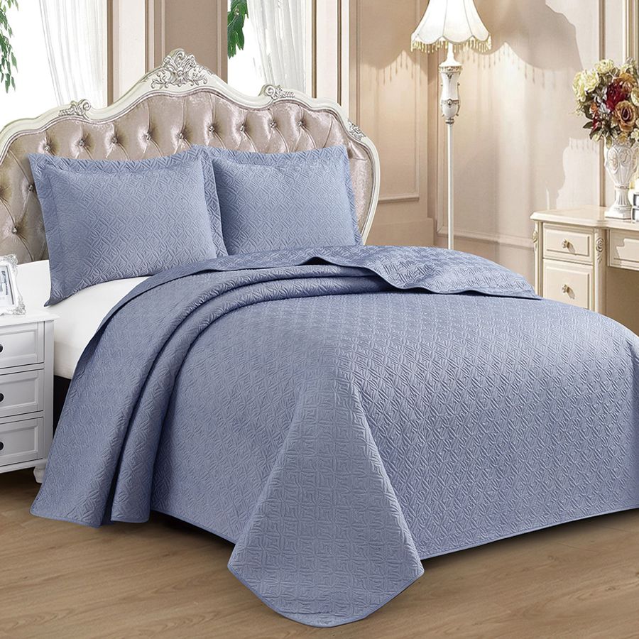 Торговая марка Cleo (Клео) зарекомендовала себя как производитель качественного текстиля с постоянным пополнением коллекций. Производство находится в Китае, для тканей используются только современные станки и безопасные красители. Благодаря полному циклу изготовления цены получаются более чем демократичными. Покрывало коллекции «Muscat» отличается удивительно мягкой поверхностью и при этом сохраняет износостойкость и прочность. Эта коллекция покрывал состоит из приглушенных, пастельных расцветок, поверхность материала бархатистая, не блестит, по краям выполнена отделка тонким кантом (косая бейка). Повторяющийся узор образован стежкой, наполнитель – синтепон. Покрывало изготовлено из полиэстера. В комплект входят две наволочки с французским кантом. Изделие может стать украшением интерьера вашего дома, а также роскошным подарком для Ваших близких.