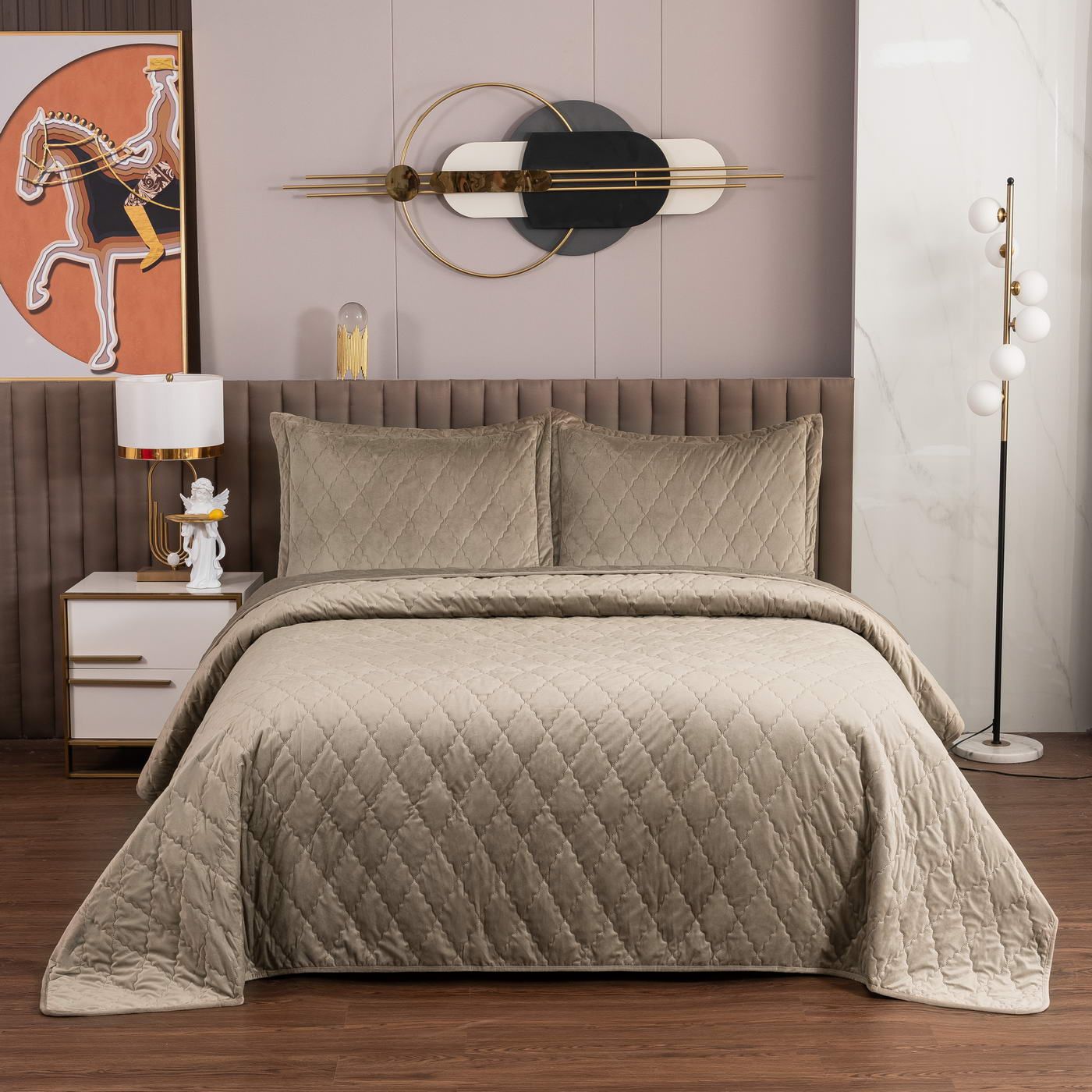 Покрывало Деметра имеет лаконичный дизайн и приятную текстуру. Из-за особого плетения, велюровая ткань отражает свет и красиво переливается при различном освещении. Изделия из велюра хорошо сохраняют тепло и дарят чувство комфорта.