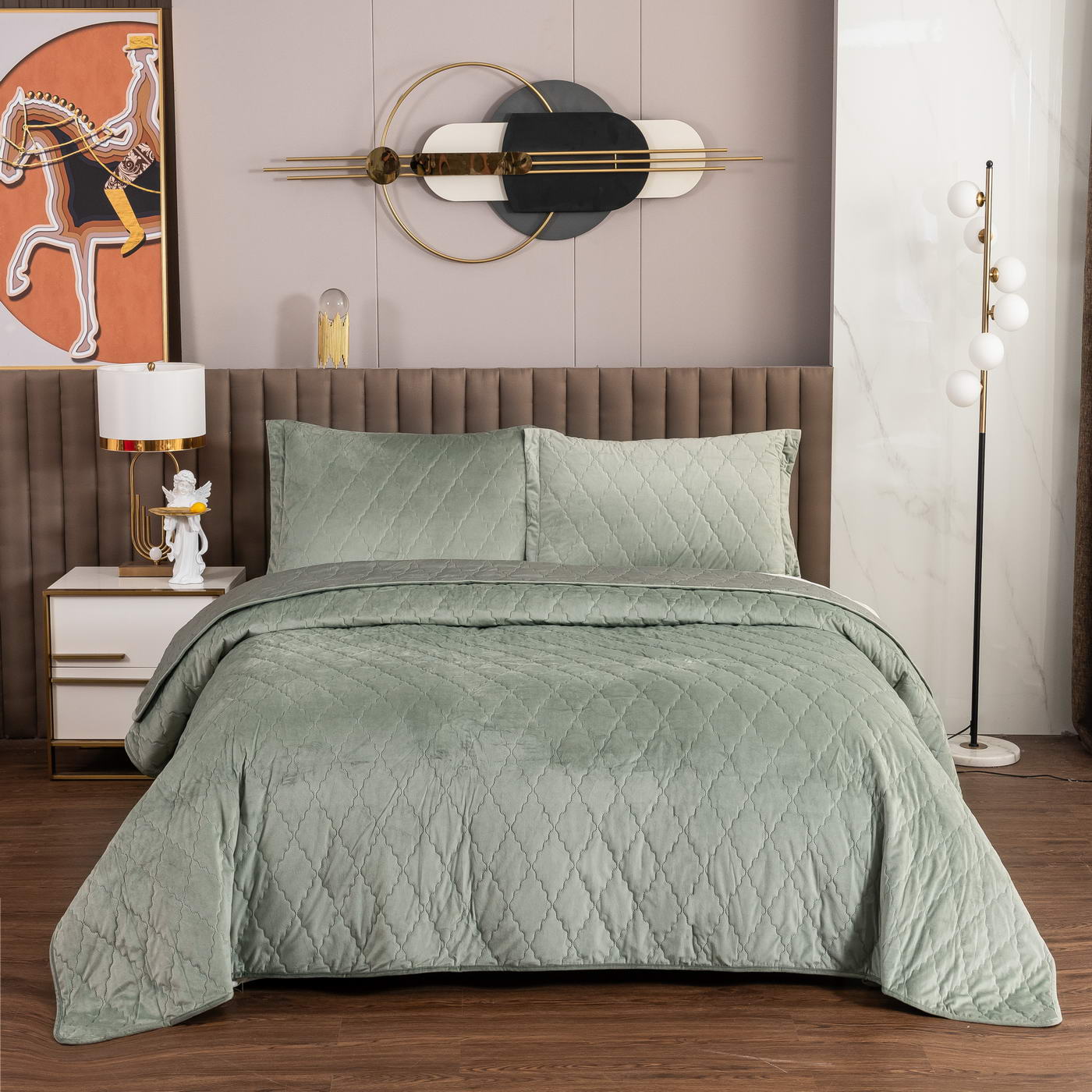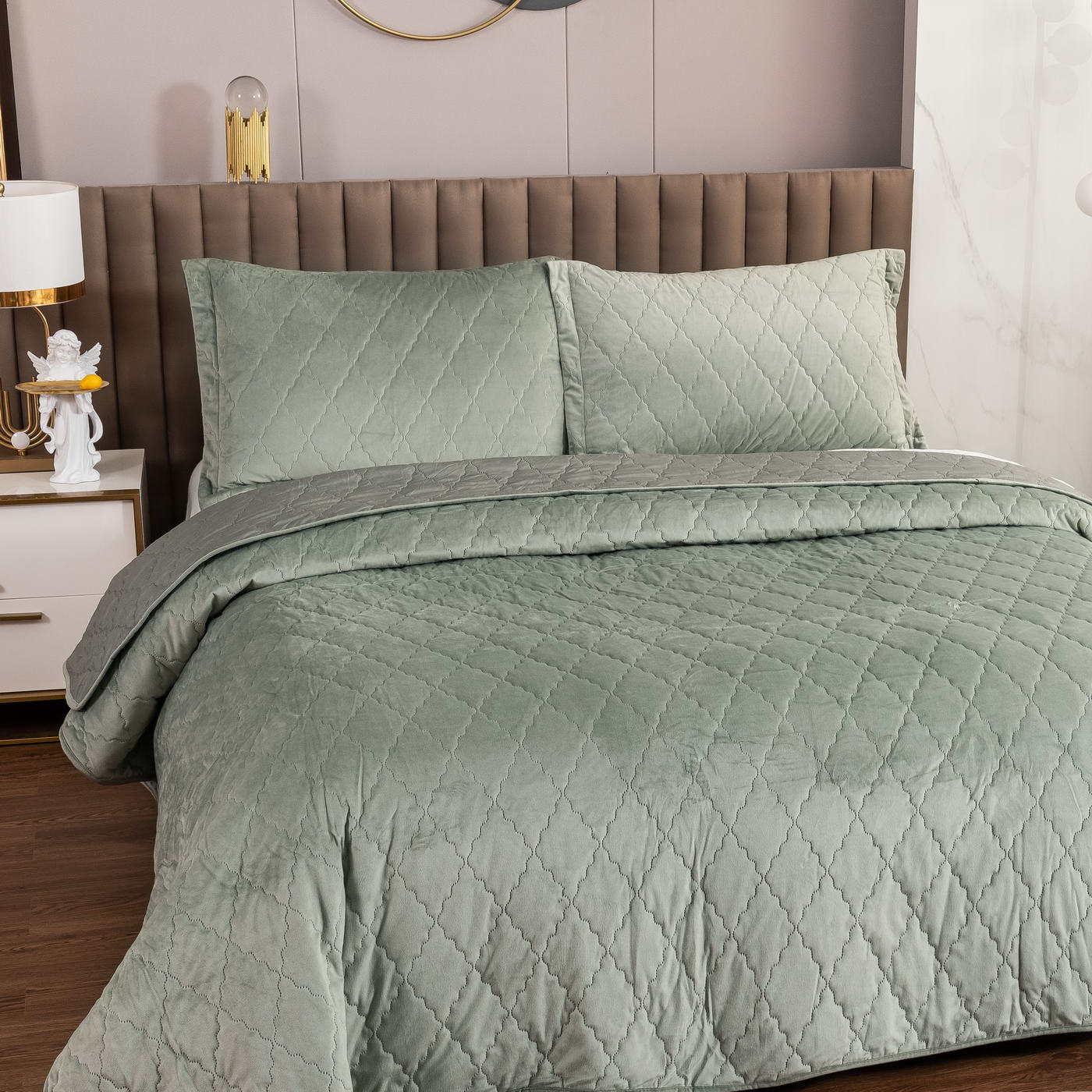 Покрывало Деметра имеет лаконичный дизайн и приятную текстуру. Из-за особого плетения, велюровая ткань отражает свет и красиво переливается при различном освещении. Изделия из велюра хорошо сохраняют тепло и дарят чувство комфорта.