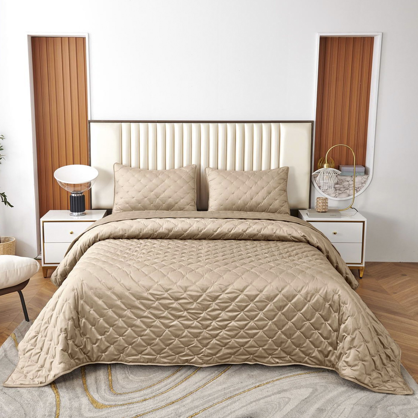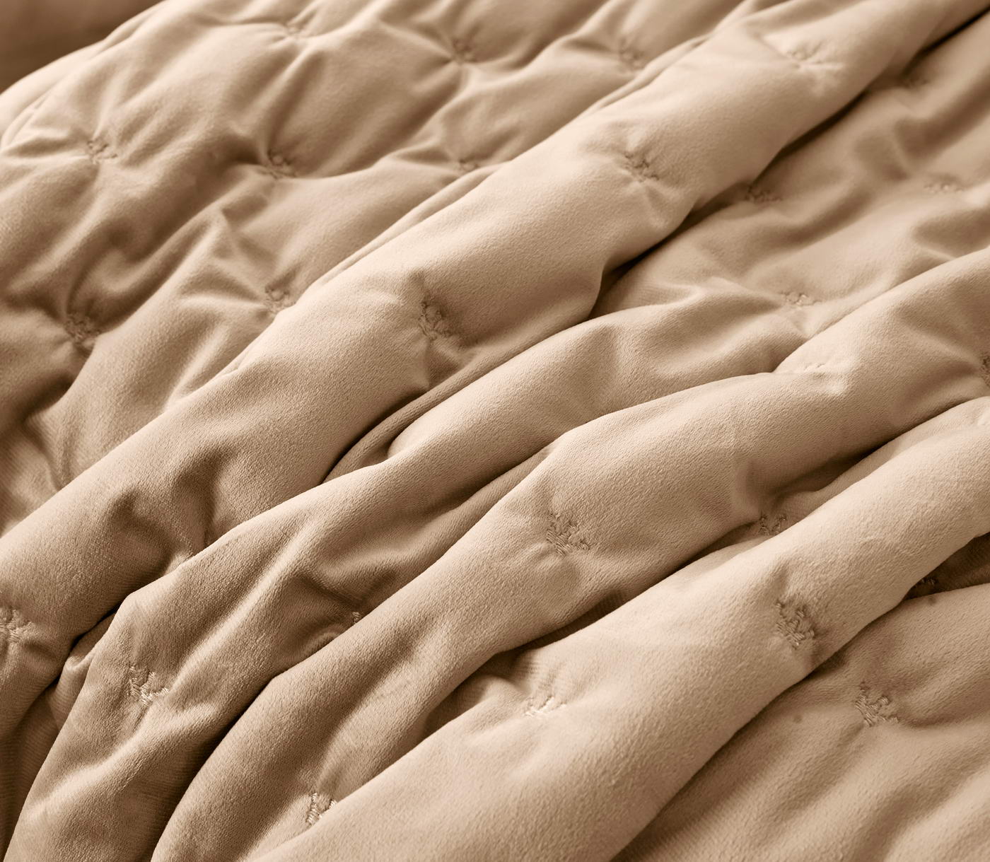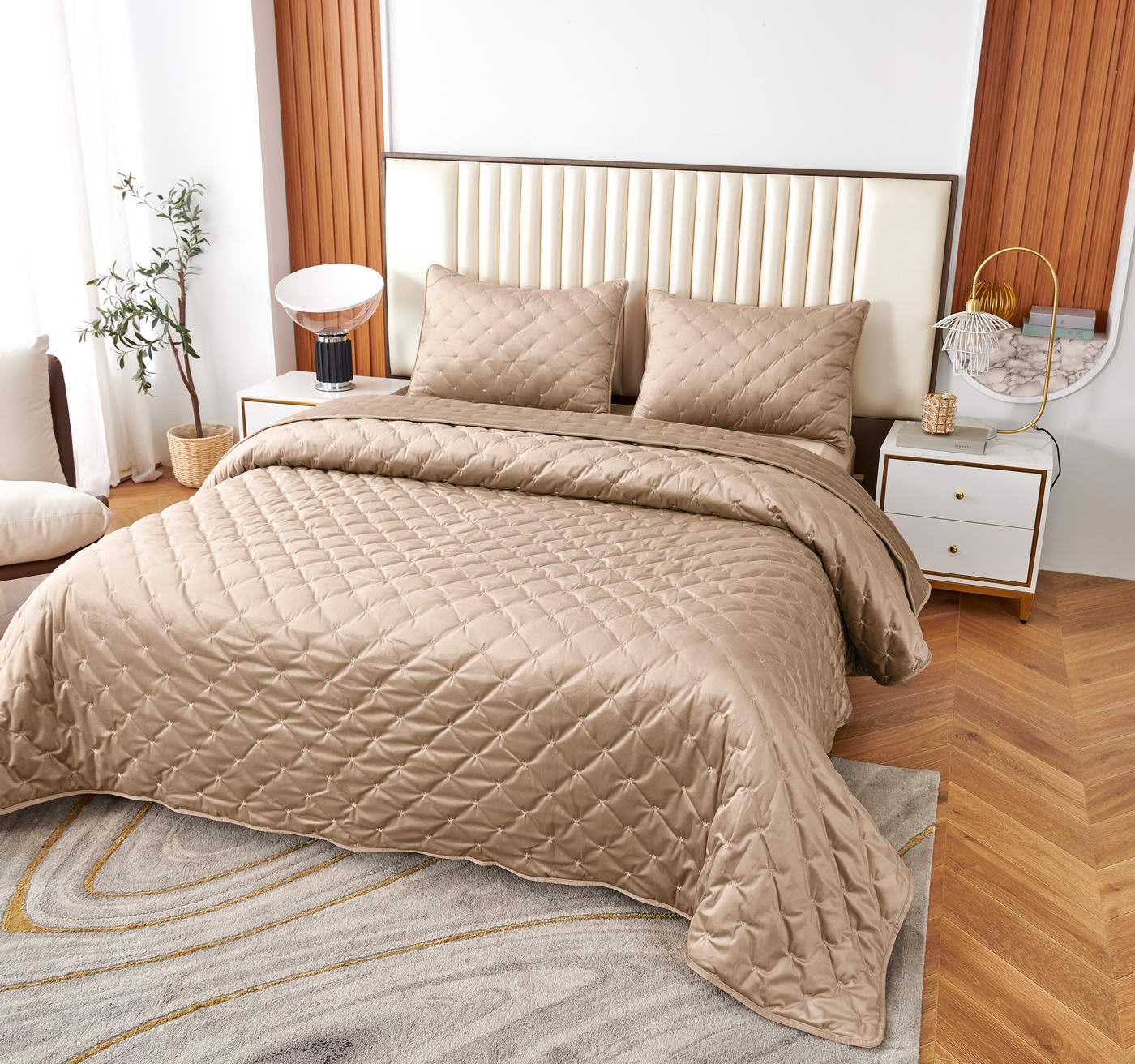 Велюровое покрывало Лея с вышивкой в виде короны действительно украсит любой интерьер. Многообразие оттенков позволит подобрать идеальный вариант, а необычный дизайн добавит шика и аристократизма. Такое покрывало станет не только красивым, но и комфортным элементом. Из-за особого плетения, велюровая ткань отражает свет и красиво переливается при различном освещении. Изделия из велюра хорошо сохраняют тепло и дарят чувство комфорта. Покрывало изготовлено из 100% вискозы, что делает его невероятно мягким и комфортным. В комплект входят покрывало и две наволочки на запахе. Изделия гипоаллергенны, подходят детям и взрослым людям с чувствительной кожей. Покрывала и наволочки не линяют, сохраняют форму и цвет при многочисленных стирках и не выгорают на солнце. Изделия можно стирать в щадящем режиме при температуре не выше 30 градусов.