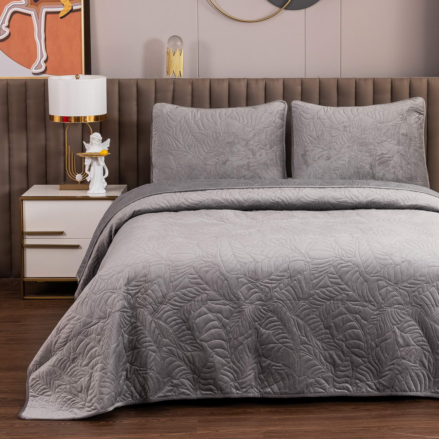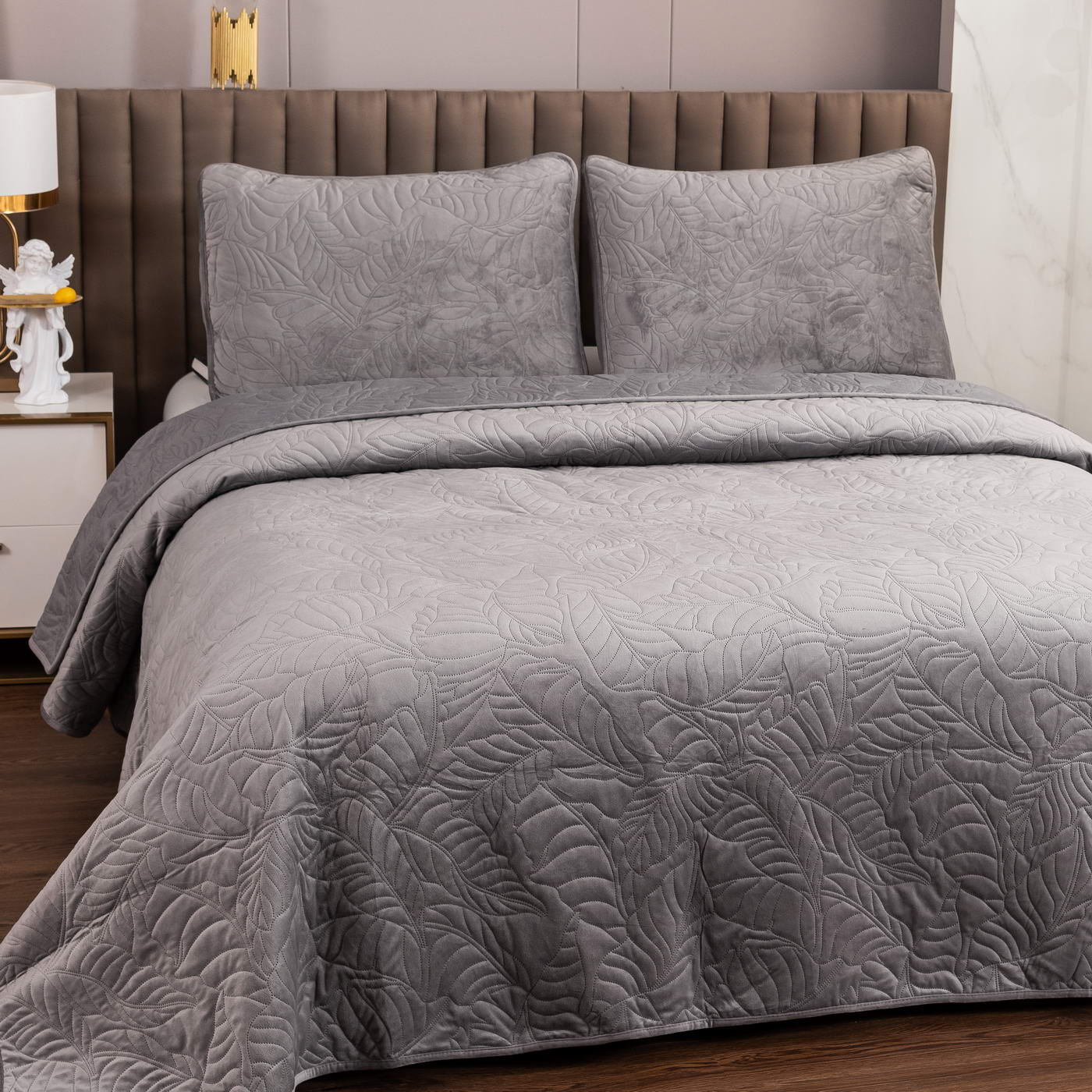 Уютные, мягкие велюровые покрывала Мелисса будут желанны в любом доме. Коллекция выполнена в классических тонах, что делает изделия подходящими для большинства интерьеров, а изящный рисунок в виде листьев подчеркивает индивидуальность.