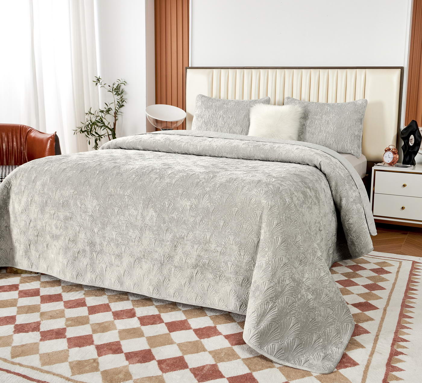 Покрывало Розалин – это воплощение комфорта и стиля созданное из высококачественного бархата в различных трендовых цветах. подчеркнёт уникальность интерьера. Бархатная ткань из 100% вискозы, придаёт покрывалу невероятную нежность и элегантность. Розалин – это нежное и уютное объятие, в которое приятно завернуться в прохладные вечера. Две наволочки дополняют ансамбль, придавая завершённый вид. Уход за покрывалом простой и доступный, позволяет сохранить яркие цвета и приятную на ощупь текстуру. Изделия можно стирать в щадящем режиме при температуре не выше 30 градусов. Гипоаллергенность этого покрывала — залог беззаботного сна и покоя. Здесь не использованы синтетические красители, пропитка и обработка. Подарите своей спальне нотку элегантности и уюта.