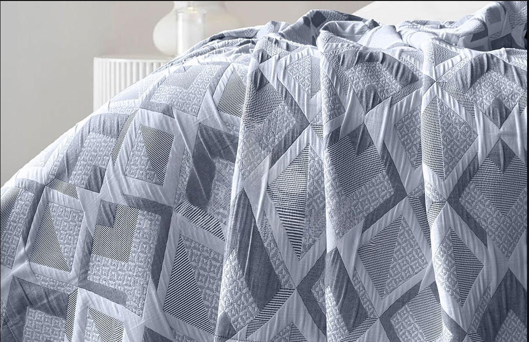 Покрывало Seline из жаккардового хлопка — идеальная гармония эстетики и экологичности! Уникальная трехслойная жаккардовая ткань, состоящая на 70% из натурального хлопка, придает покрывалу неповторимую нежность и воздушность, а наличие полиэстера в составе наделяет покрывало такими важными свойствами как износостойкость и долговечность. Мягкая гипоаллергенная фактура ткани будет приятна даже людям с чувствительной кожей. Для крашения пряжи используются экологичные органические составы, которые позволяют получить деликатные сдержанные цвета, устойчивые к многократным стиркам. Жаккардовая текстурная поверхность отличается высокой износостойкостью, не пиллингуется и устойчива к образованию затяжек. Благородный узор "волна" и струящаяся рельефная фактура делают покрывало настоящим украшением интерьера. Сдержанная элегантность в нежных бежево-кремовых тонах создает атмосферу уюта и гармонии. Функциональное и практичное покрывало легко превращается из изысканного декора в уютный плед для вечернего отдыха или нежное