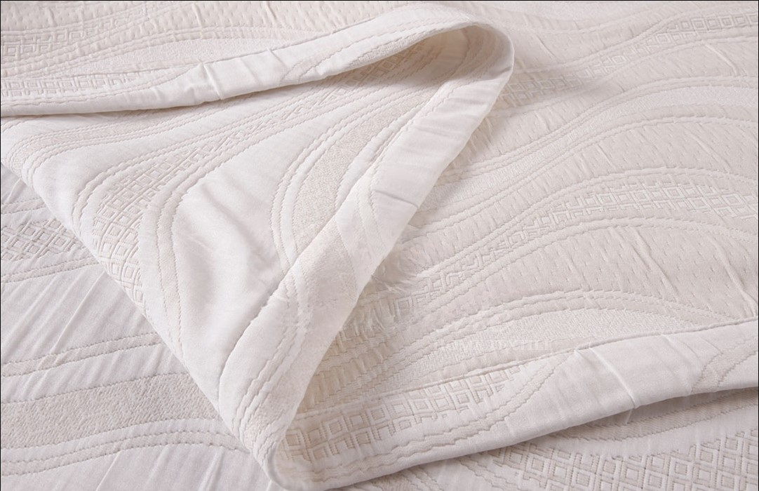 Покрывало Seline из жаккардового хлопка — идеальная гармония эстетики и экологичности! Уникальная трехслойная жаккардовая ткань, состоящая на 70% из натурального хлопка, придает покрывалу неповторимую нежность и воздушность, а наличие полиэстера в составе наделяет покрывало такими важными свойствами как износостойкость и долговечность. Мягкая гипоаллергенная фактура ткани будет приятна даже людям с чувствительной кожей. Для крашения пряжи используются экологичные органические составы, которые позволяют получить деликатные сдержанные цвета, устойчивые к многократным стиркам. Жаккардовая текстурная поверхность отличается высокой износостойкостью, не пиллингуется и устойчива к образованию затяжек. Благородный узор "волна" и струящаяся рельефная фактура делают покрывало настоящим украшением интерьера. Сдержанная элегантность в нежных бежево-кремовых тонах создает атмосферу уюта и гармонии.