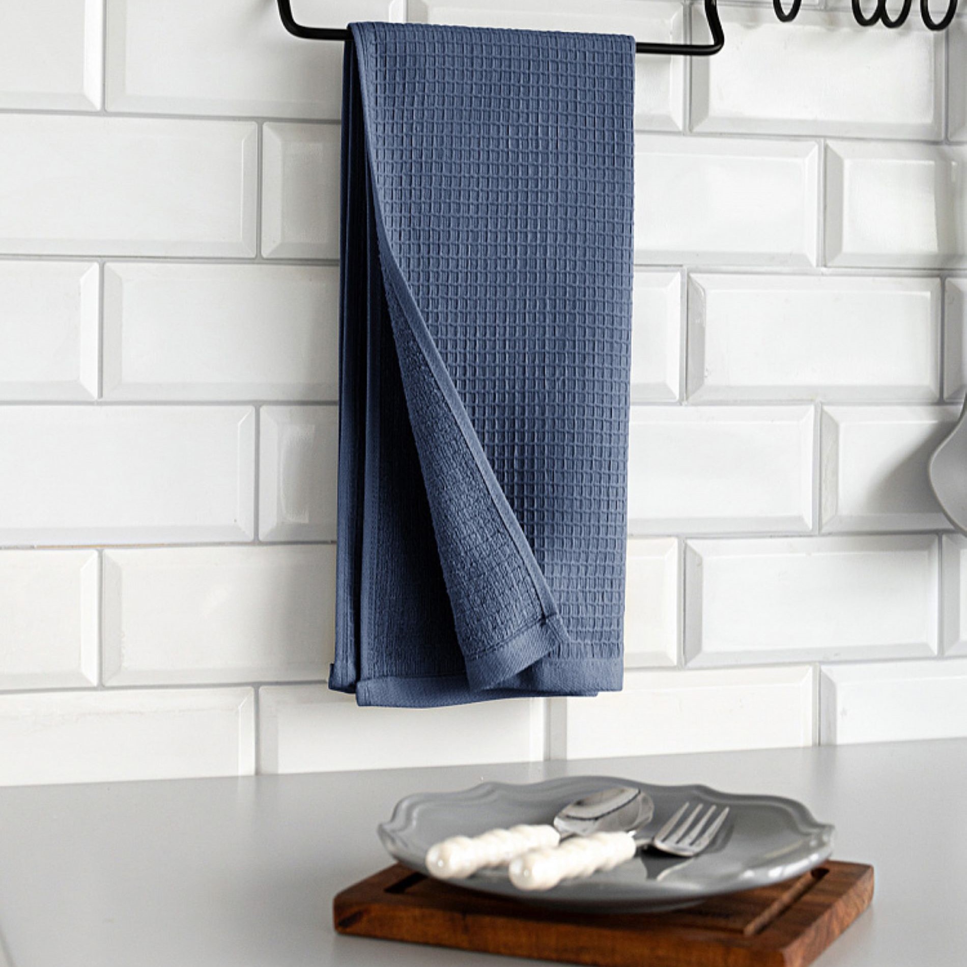 Кухонные полотенца DeNastia изготовлены из мягкого двустороннего полотна. Одна сторона вафельная, вторая махровая. Полотенце сочетает в себе преимущества обоих видов: быстрое высыхание за счет ячеестой структуры, увеличенный объем впитываемой жидкости и отсутствие частиц ворса на посуде. Повышенная плотность делает изделия более прочными и позволяет надолго сохранить цвет и форму. Хлопок натуральный, не обработан химическими компонентами, после стирки возможна усадка. Благодаря лаконичному дизайну полотенца идеально впишутся в интерьер, для удобства использования имеется петелька для подвеса на полотенцедержатель. При правильном уходе за полотенцами для кухни они не потеряют внешний вид при повседневном использовании и стирке.