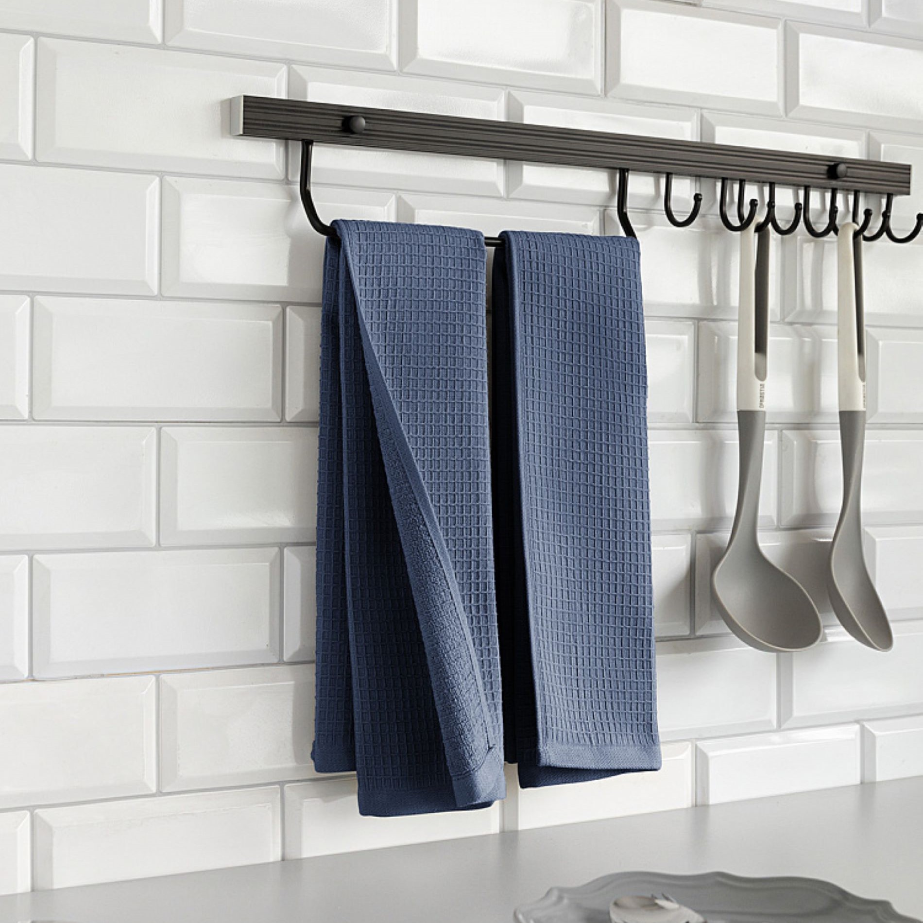 Кухонные полотенца DeNastia изготовлены из мягкого двустороннего полотна. Одна сторона вафельная, вторая махровая. Полотенце сочетает в себе преимущества обоих видов: быстрое высыхание за счет ячеестой структуры, увеличенный объем впитываемой жидкости и отсутствие частиц ворса на посуде. Повышенная плотность делает изделия более прочными и позволяет надолго сохранить цвет и форму. Хлопок натуральный, не обработан химическими компонентами, после стирки возможна усадка. Благодаря лаконичному дизайну полотенца идеально впишутся в интерьер, для удобства использования имеется петелька для подвеса на полотенцедержатель. При правильном уходе за полотенцами для кухни они не потеряют внешний вид при повседневном использовании и стирке.