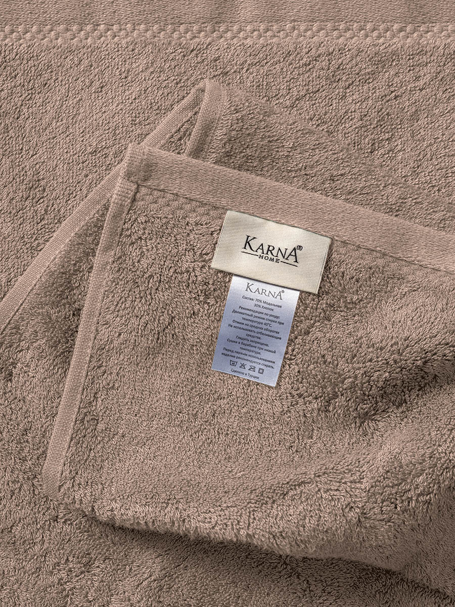 Полотенце микрокоттон "Karna" Akra из модала превосходно впитывает влагу и, благодаря своей мягкости, идеально подходят для чувствительной кожи. Махровое полотно из модала - это очень прочный и износостойкий материал, имеющий шелковистую и приятную на ощупь поверхность. Очень мягкая махра отличает данные изделия от обычных. В производстве полотна используются качественные и стойкие красители, они безопасны для здоровья и сохраняют яркость и насыщенность цвета даже после многократных стирок. У полотенец линейки Akra высокая плотность, что придает изделию исключительную мягкость, пушистость, повышенную гигроскопичность и воздухопроницаемость.