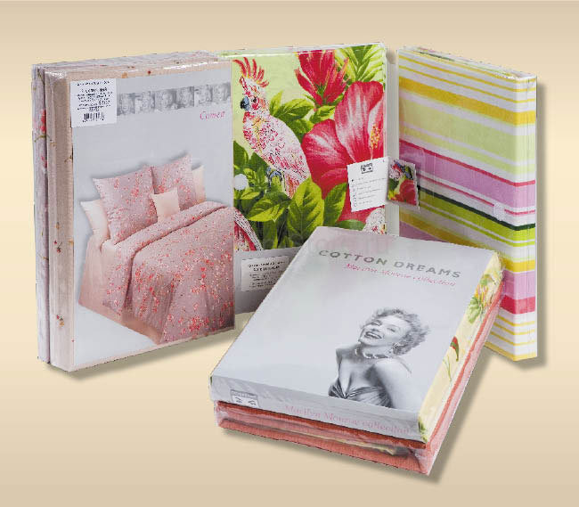 Белье из поплина имеет полотняное (бязевое) переплетение. Это практичная и износостойкая ткань, не требующая особого ухода. В плетении используются нити разной толщины, что создает легкий рубчик, полотно получается рельефным и двусторонним. Белье из поплина легко стирается при низких температурах и не боится высоких, сохраняя рисунок в первоначальном ярком виде, даже после большого количества стирок. Постельное белье скроено из цельного отреза материала и имеет минимум швов.