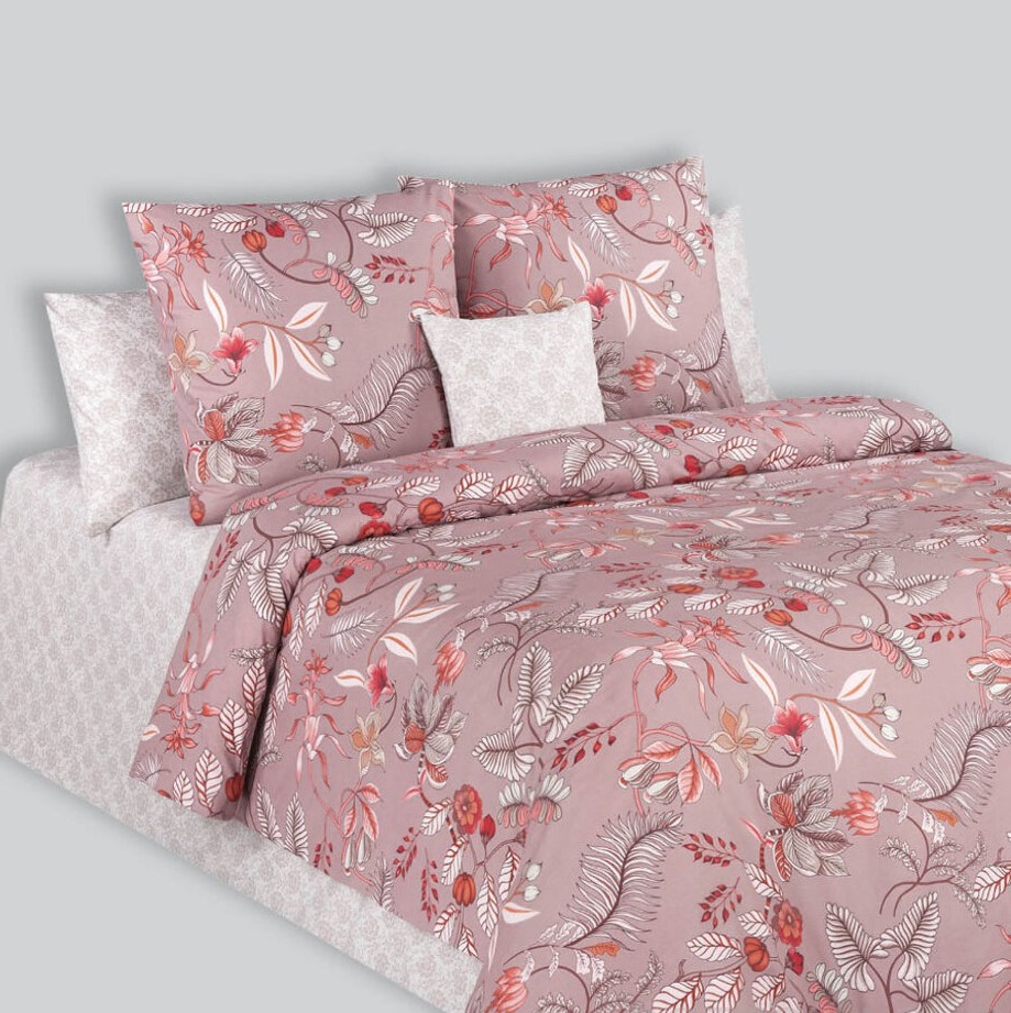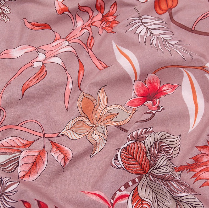 Белье из поплина имеет полотняное (бязевое) переплетение. Это практичная и износостойкая ткань, не требующая особого ухода. В плетении используются нити разной толщины, что создает легкий рубчик, полотно получается рельефным и двусторонним. Белье из поплина легко стирается при низких температурах и не боится высоких, сохраняя рисунок в первоначальном ярком виде, даже после большого количества стирок. Постельное белье скроено из цельного отреза материала и имеет минимум швов.