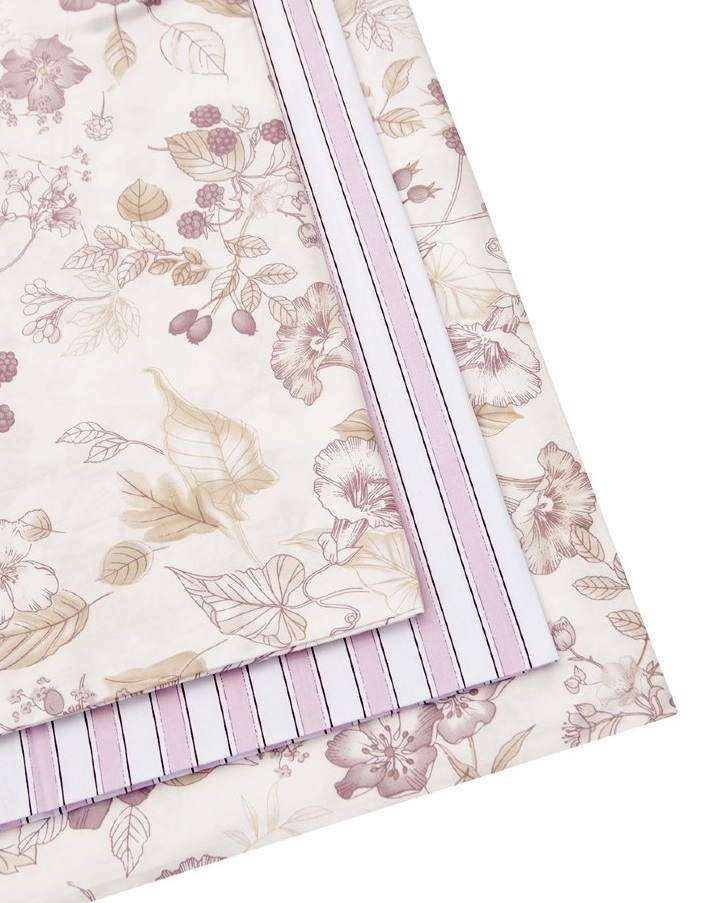 Перкаль изготавливается из 100% хлопка, собранного вручную, что придает ему дополнительную нежность и гладкость. Благодаря реактивному окрашиванию, рисунок белья выглядит ярким и насыщенным, не теряя своей свежести даже после многократных стирок.