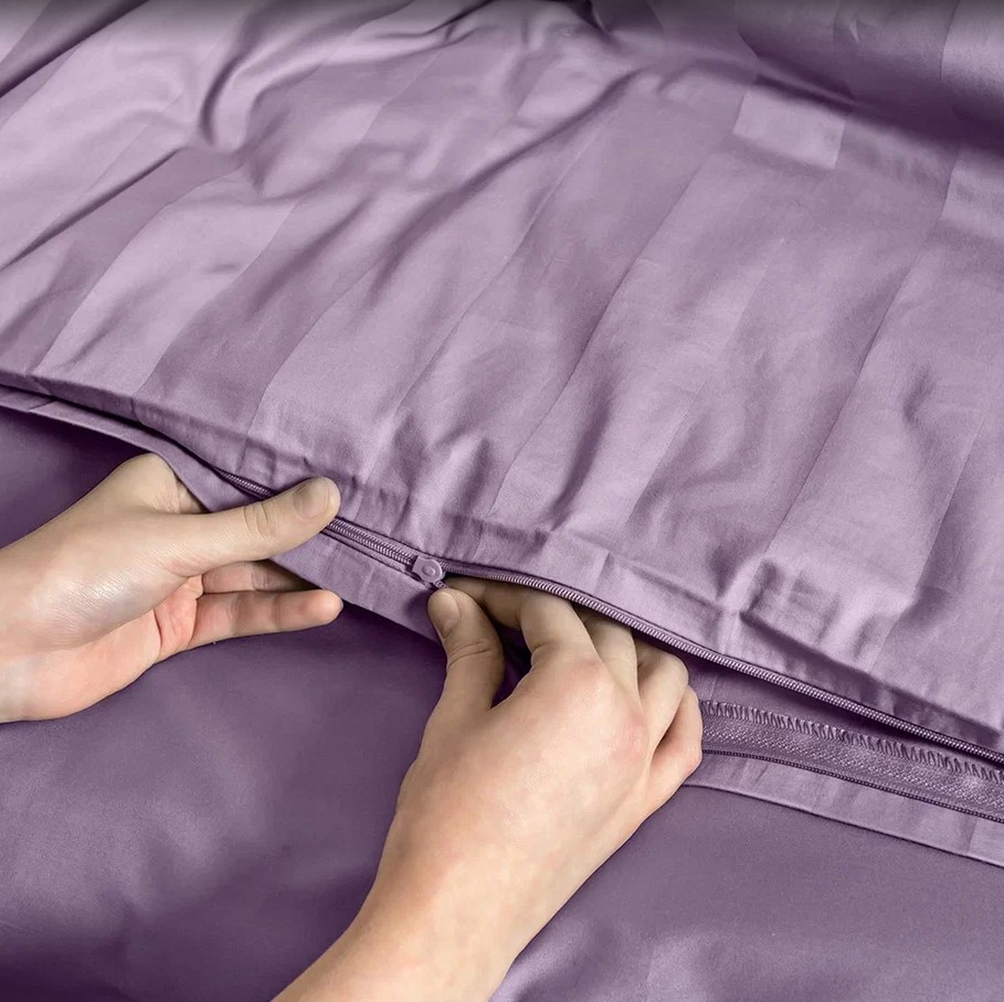 Современная коллекция Urban Classic это невероятный стиль, элегантная лаконичность и простота. Комплект постельного белья изготовлен из ткани страйп-сатин – 100% египетский хлопок с жаккардовым рисунком. Благодаря плетению из тонкой крученой нити ткань получается гладкой, нежной и приятной на ощупь. Сатин пропускает воздух, поддерживает комфортную температуру тела во время сна. За счет высокой плотности ткань не пиллингуется, обладает повышенной износостойкостью и выдерживает до 500 стирок. Комплект изготовлен с использованием особой технологии, что в разы повышает характеристики ткани: белье не скользит, надолго сохраняет яркость цвета и блеск, не деформируется после стирки. Декоративные ушки по трем сторонам наволочки и глубокий клапан по широкой стороне обеспечивают плотное прилегание к подушке. Пододеяльник на молнии по нижнему краю. Клапаны для рук в верхней части предназначены для быстрой и удобной смены постельного белья.