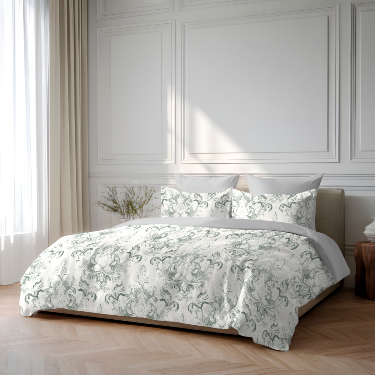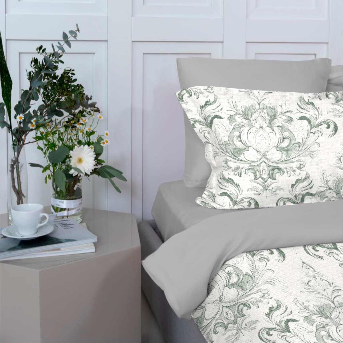 Роскошная коллекция постельного белья «Ла прима» вдохновлена эпохой Возрождения и искусством Ренессанса. Эксклюзивные авторские дизайны коллекции - яркие и свежие, фактурные, утончённые или винтажные создадут акцент и настроение в интерьере. Комплект выполнен из 100% египетского длинноволокнистого хлопка, который обладает высокой прочностью и износостойкостью. Благодаря специальному плетению ткань получается гладкой, нежной, приятной на ощупь и обладает роскошным блеском. Мако-сатин гигроскопичен, хорошо пропускает воздух и поддерживает комфортную температуру тела во время сна. Благодаря высокой плотности, ткань обладает повышенной износостойкостью и не пиллингуется. Пододеяльник на молнии по нижнему краю. Клапаны для рук в верхней части пододеяльника для быстрой и удобной смены постельного белья. У наволочек клапан с молнией по широкой стороне для плотного прилегания и удобства вдевания подушки.