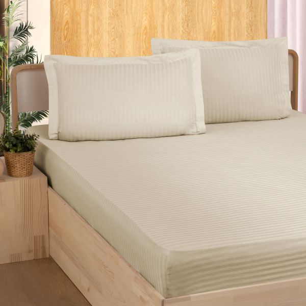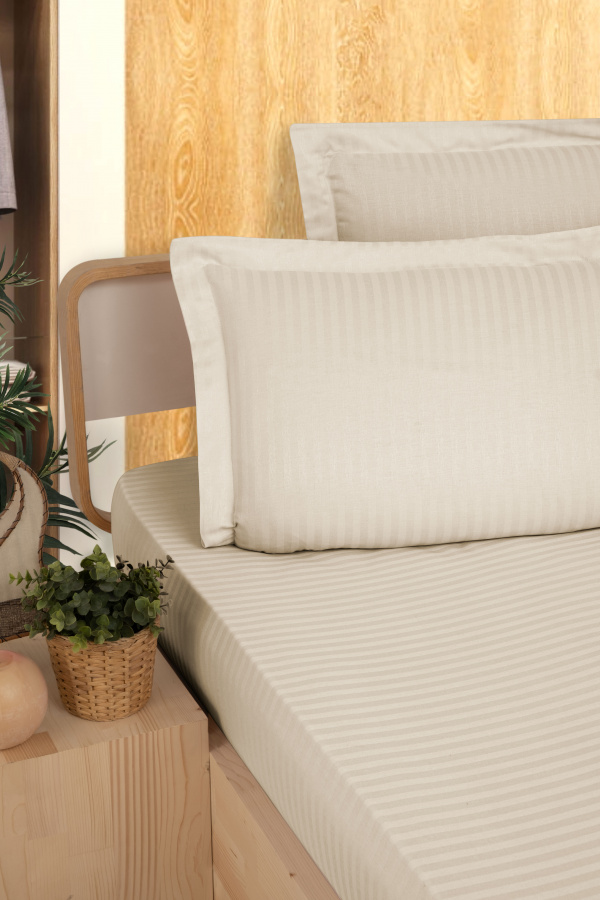 Простыня на резинке с наволочками "Karven" Stripe Satin бежевый 160*200 высота 28 см, 50*70 см-2 шт.
