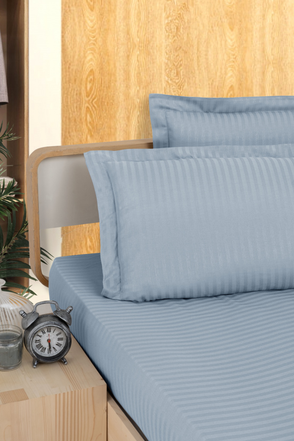 Простыня на резинке с наволочками "Karven" Stripe Satin индиго 160*200 высота 28 см, 50*70 см-2 шт.