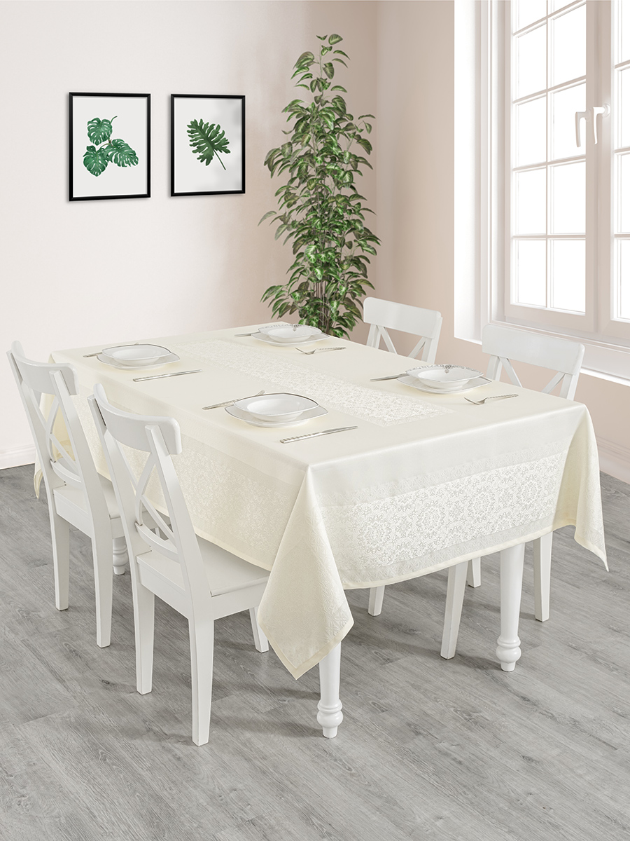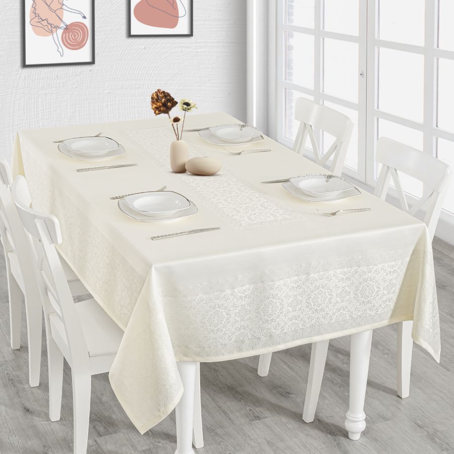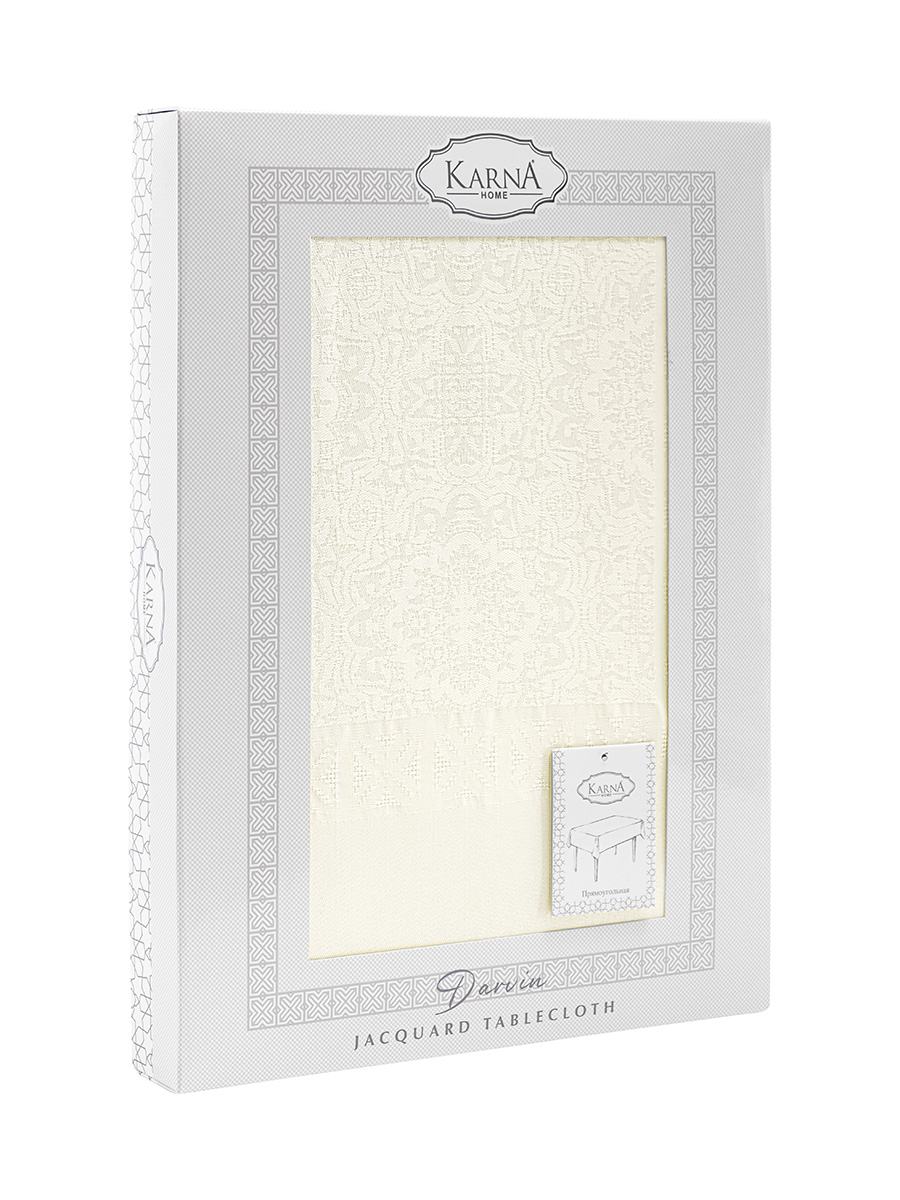 Жаккардовая скатерть Karna Darvin из высококачественного полиэстера - легкой, быстросохнущей и воздухопроницаемой ткани, обладающей многими удобными качествами. Полиэстер – влагостойкий материал, не теряющий прочности при намокании. Скатерти из полиэстера устойчивы к образованию пятен и прекрасно переносят умеренное тепловое воздействие. Ткань необыкновенно прочная и устойчива к деформации или смятию. Такая скатерть замечательно сохраняет форму, не подвергается усадке, легко стирается, не мнется и даже после продолжительной эксплуатации выглядит как новая. Продукция турецкой фирмы Karna станет украшением Вашего дома, освежит интерьер кухни. Скатерть послужит отличным подарком.