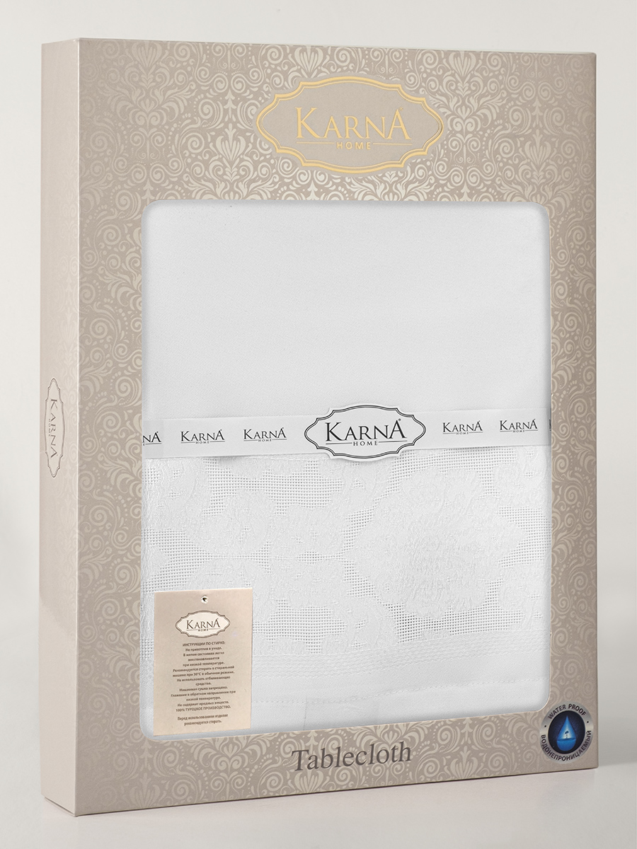 Жаккардовая скатерть Dore с легкостью украсит любой стол, дополнит интерьер и станет настоящим подарком для хозяйки, ведь она изготовлена из 100% полиэстера, легко стирается и совсем не прихотлива в уходе. Материал надежный и износостойкий, не садится, не растягивается и не мнется. Обладает высокой влагонепронициаемостью и быстро сохнет. Скатерть украшена роскошным жаккардовым рисунком и упакована в подарочную коробку.