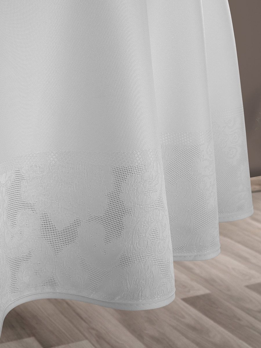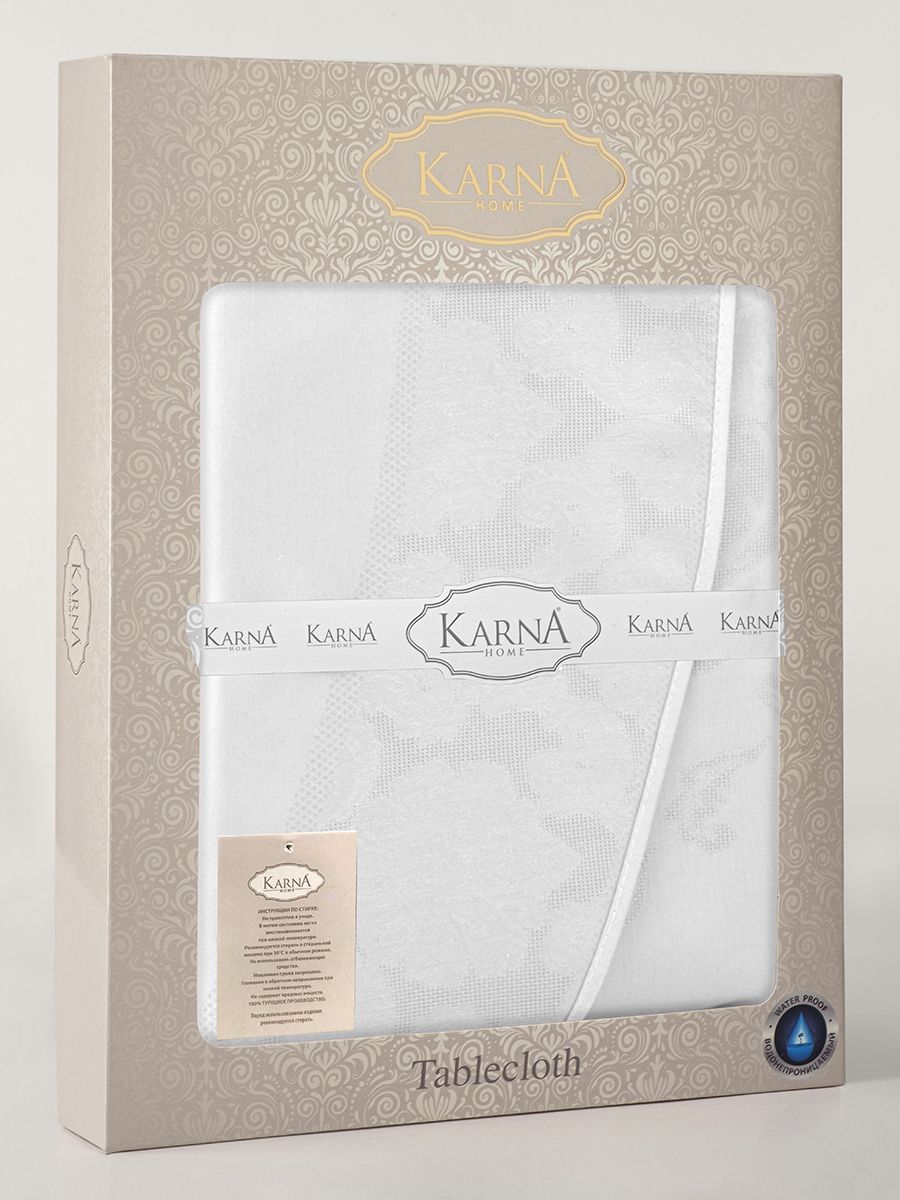 Жаккардовая скатерть Karna Dore из высококачественного полиэстера - легкой, быстросохнущей и воздухопроницаемой ткани, обладающей многими удобными качествами. Полиэстер – влагостойкий материал, не теряющий прочности при намокании. Скатерти из полиэстера устойчивы к образованию пятен и прекрасно переносят умеренное тепловое воздействие. Ткань необыкновенно прочная и устойчива к деформации или смятию. Такая скатерть замечательно сохраняет форму, не подвергается усадке, легко стирается, не мнется и даже после продолжительной эксплуатации выглядит как новая. Продукция турецкой фирмы Karna станет украшением Вашего дома, освежит интерьер кухни. Скатерть послужит отличным подарком.
