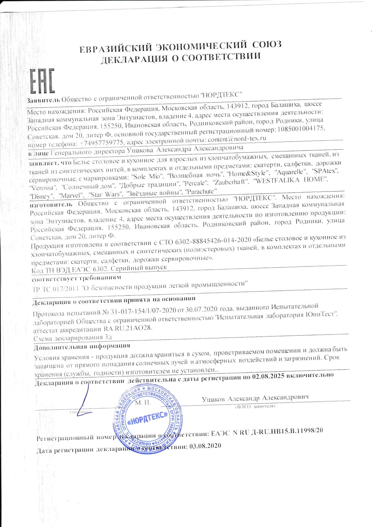 Скатерть выполнена из 100% полиэстера с фактурой рогожка, которая является олицетворением так называемого «крафта». Красоту таких тканей обеспечивает сама фактура и меланжевый эффект (неровный окрас пряжи). Скатерть после стирки не дает усадку и не деформируется. В уходе текстиль неприхотлив и скатерть всегда будет иметь отличный внешний вид. Это универсальное решение для повседневного и праздничного использования в доме или на даче.